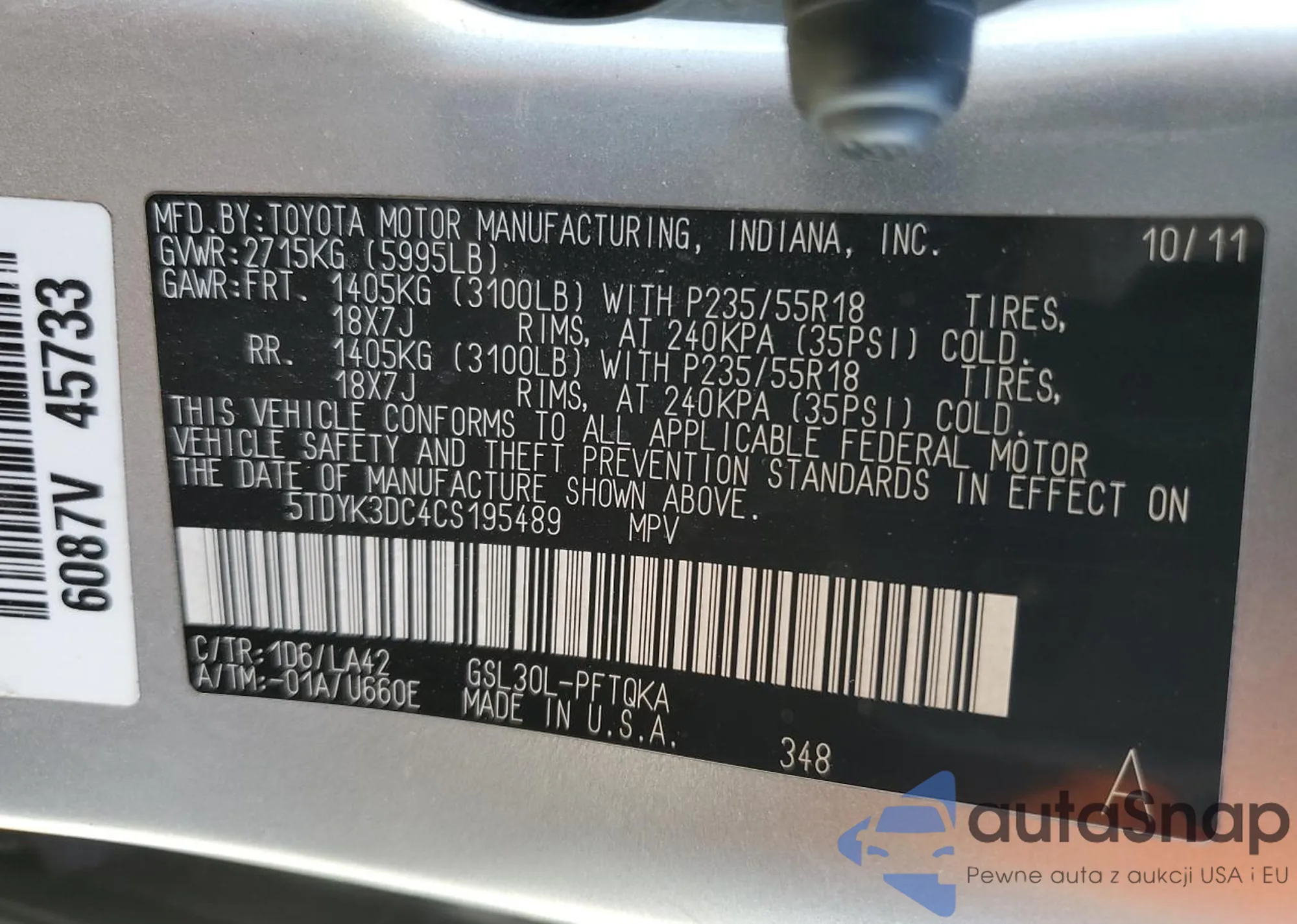 • VIN 5TDYK3DC4CS195489