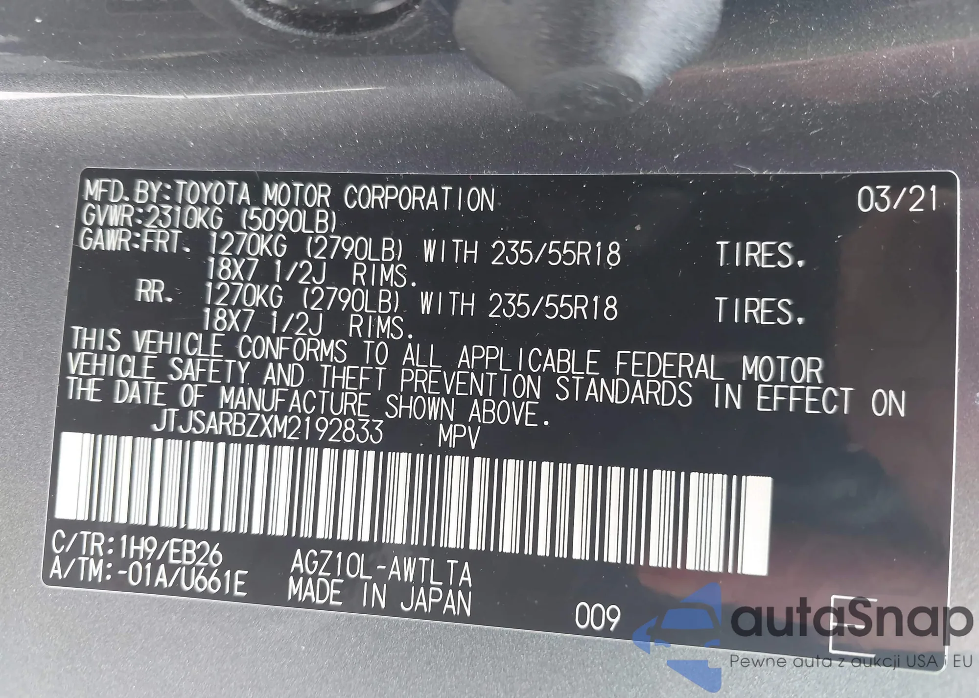 LOT: 42989245 VIN: JM1NDAL79P0561042