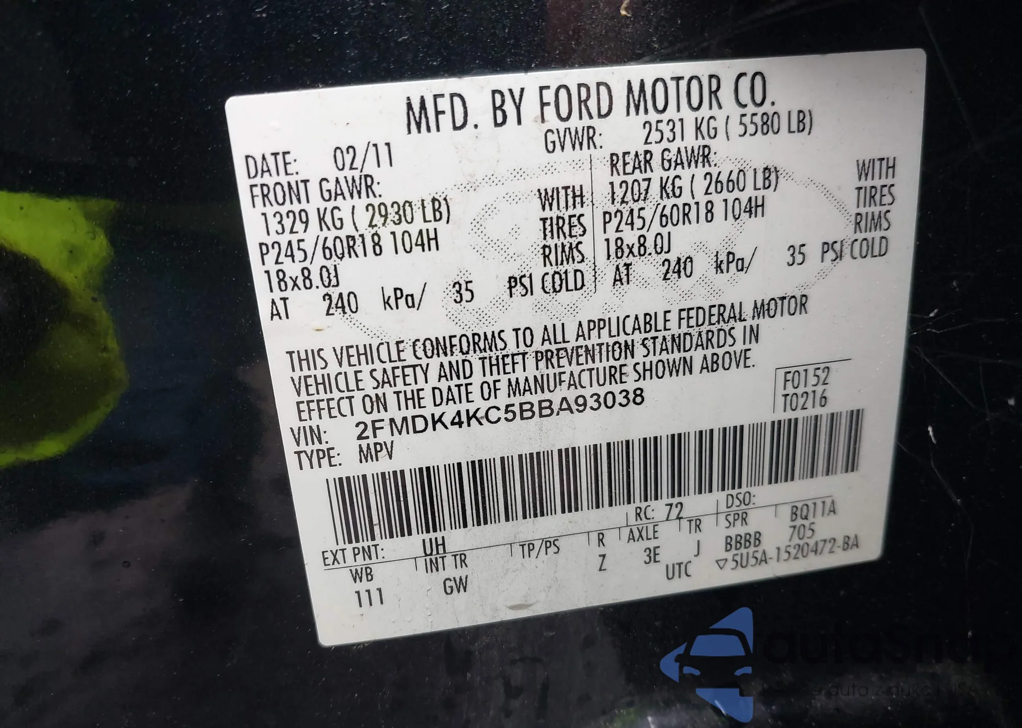• VIN WAUDFAFL5AN009656
