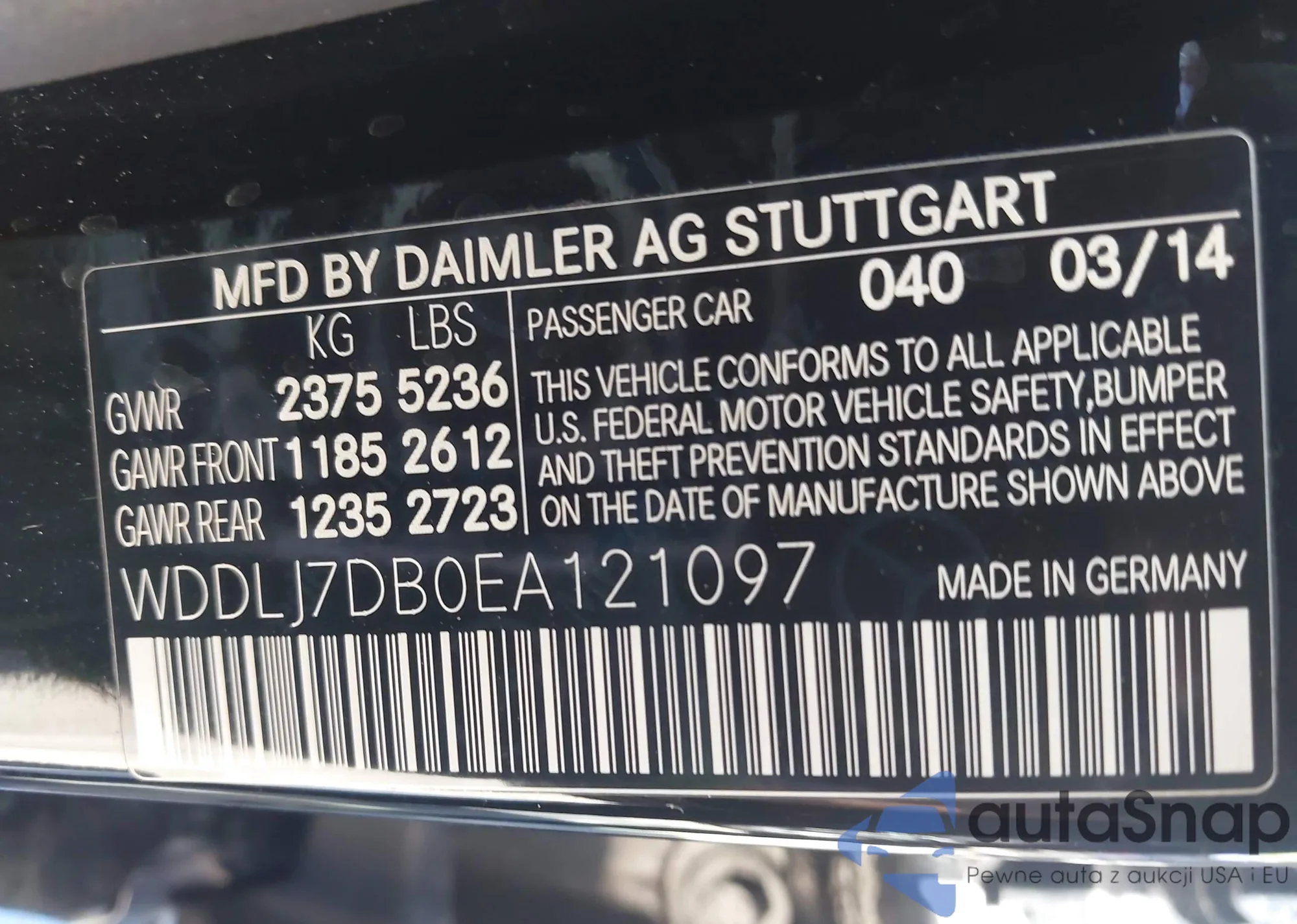 LOT: 43251666 VIN: WD3PE7CD0GP258456