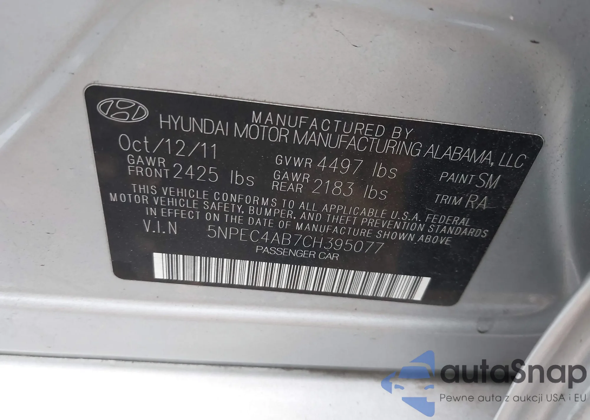 • VIN 5NPEC4AB7CH395077
