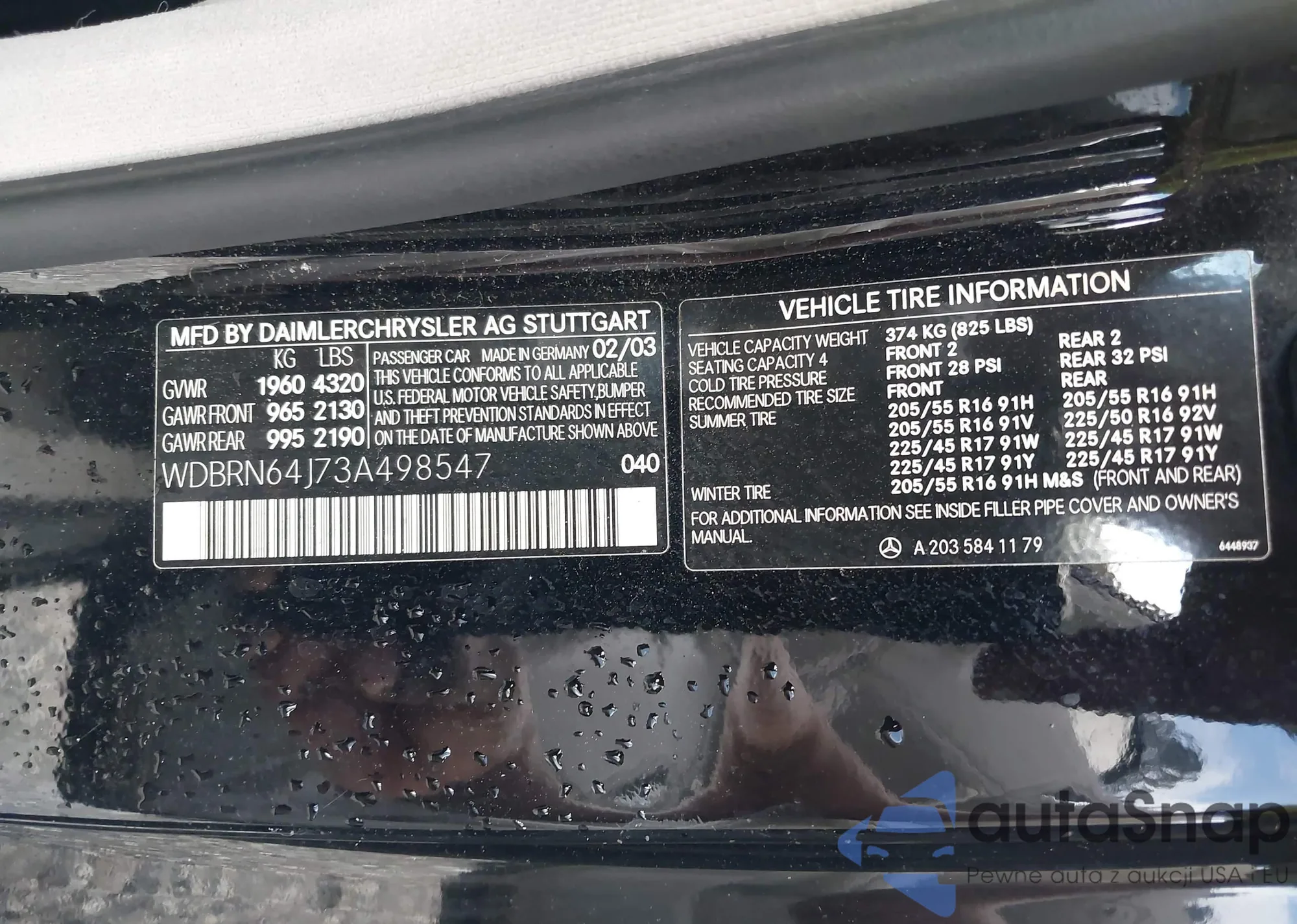 • VIN WDBRN64J73A498547