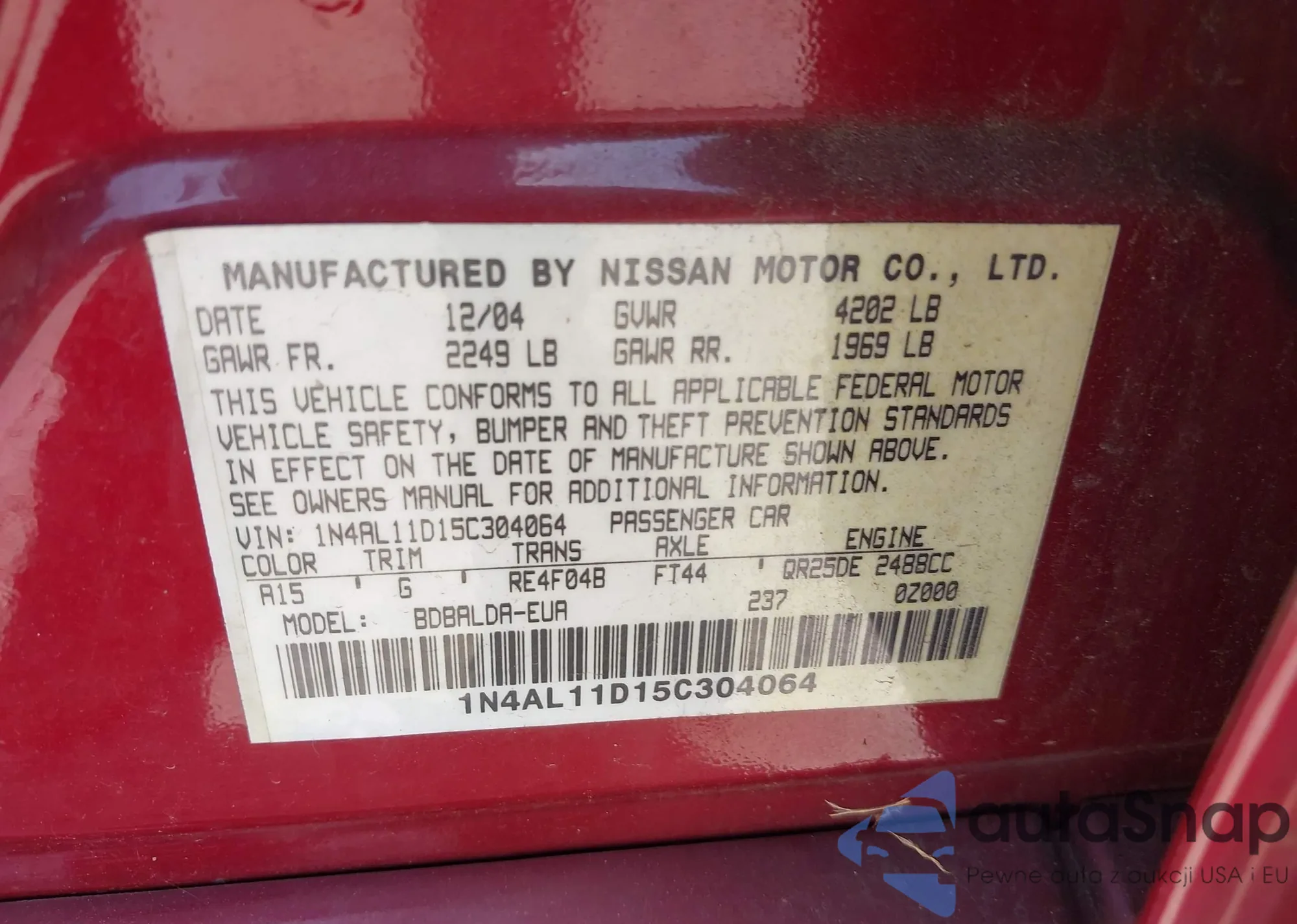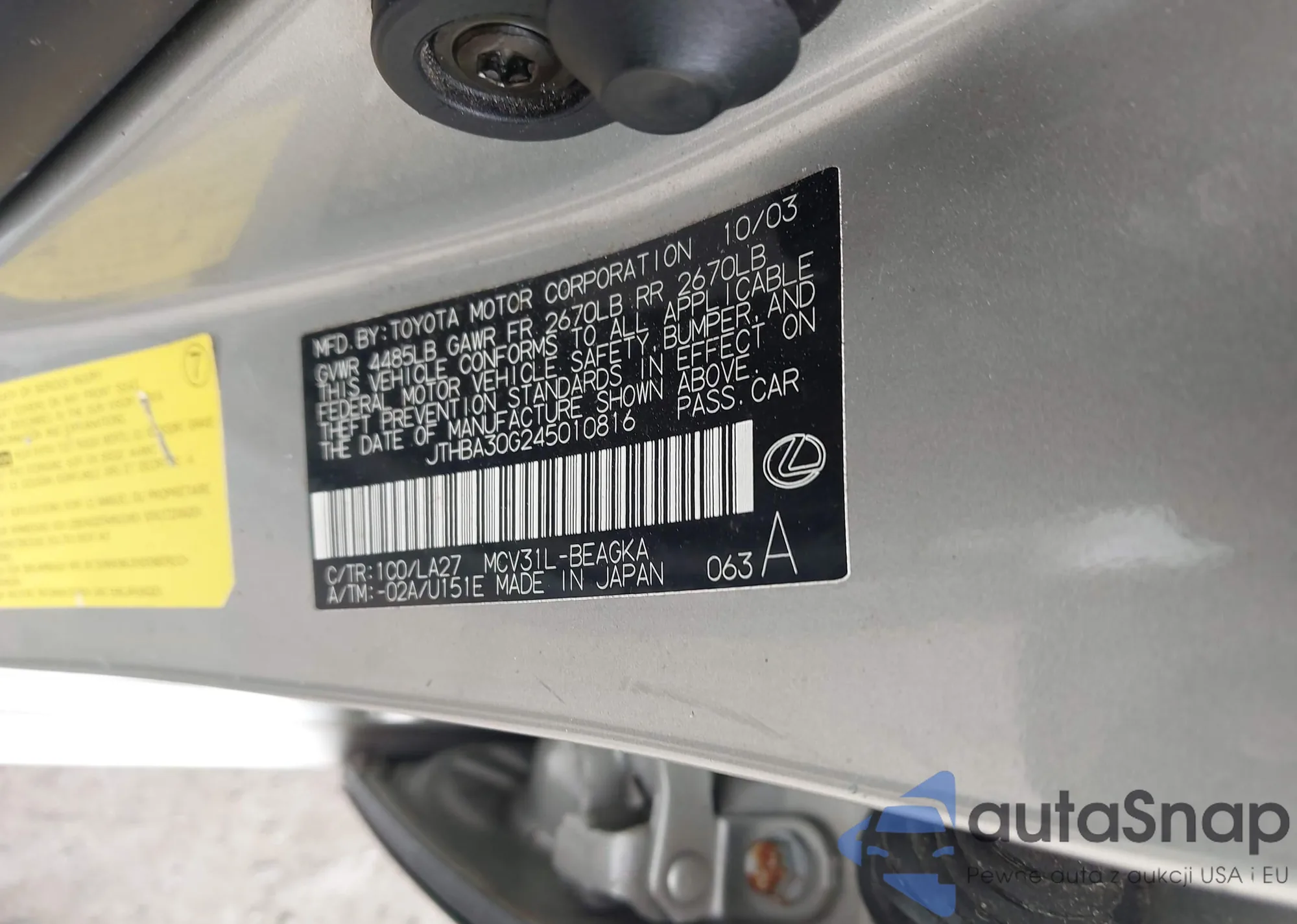 LOT: 42951786 VIN: JTHBA30G245010816