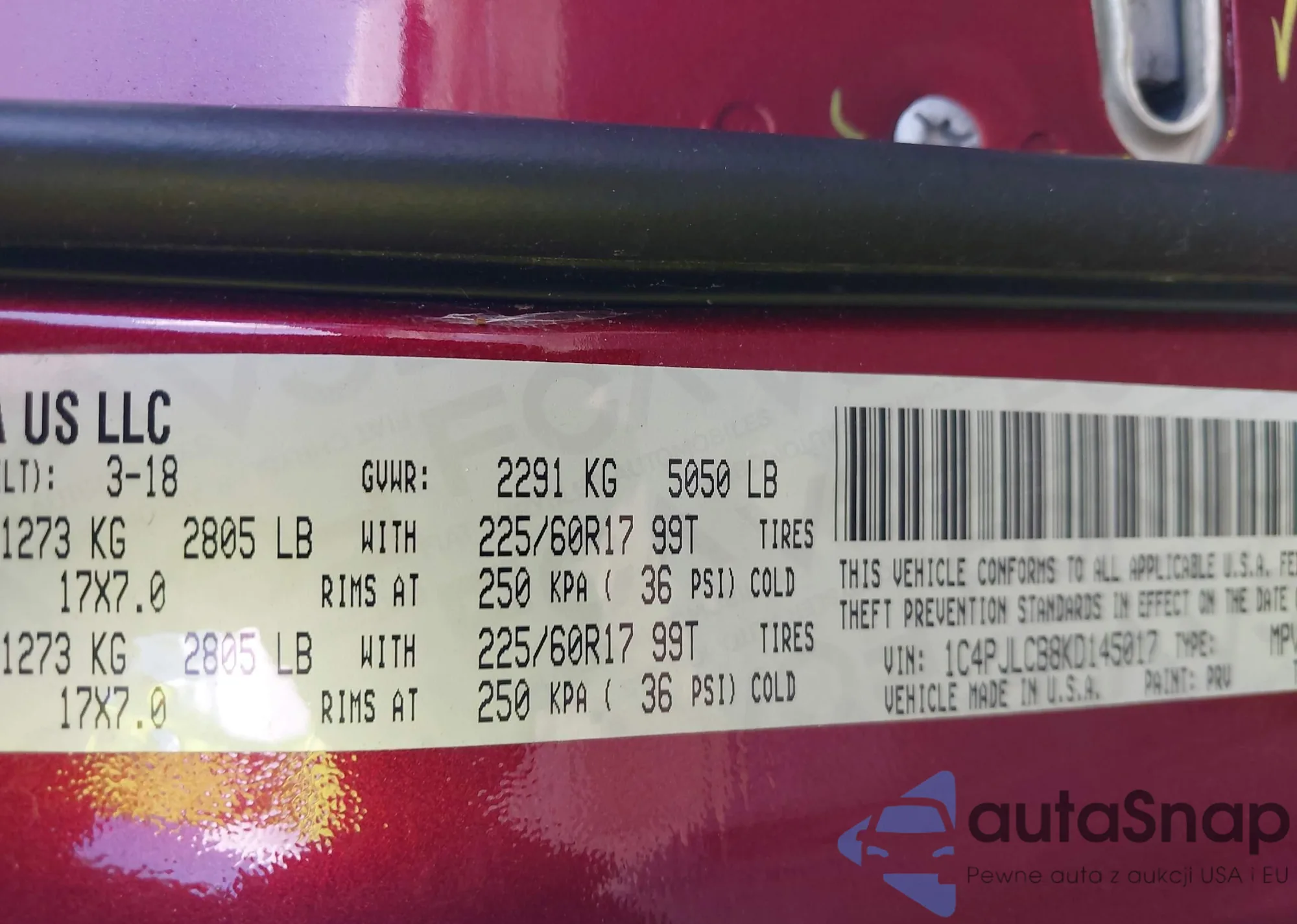 LOT: 42822938 VIN: 1C4PJLCB8KD145017