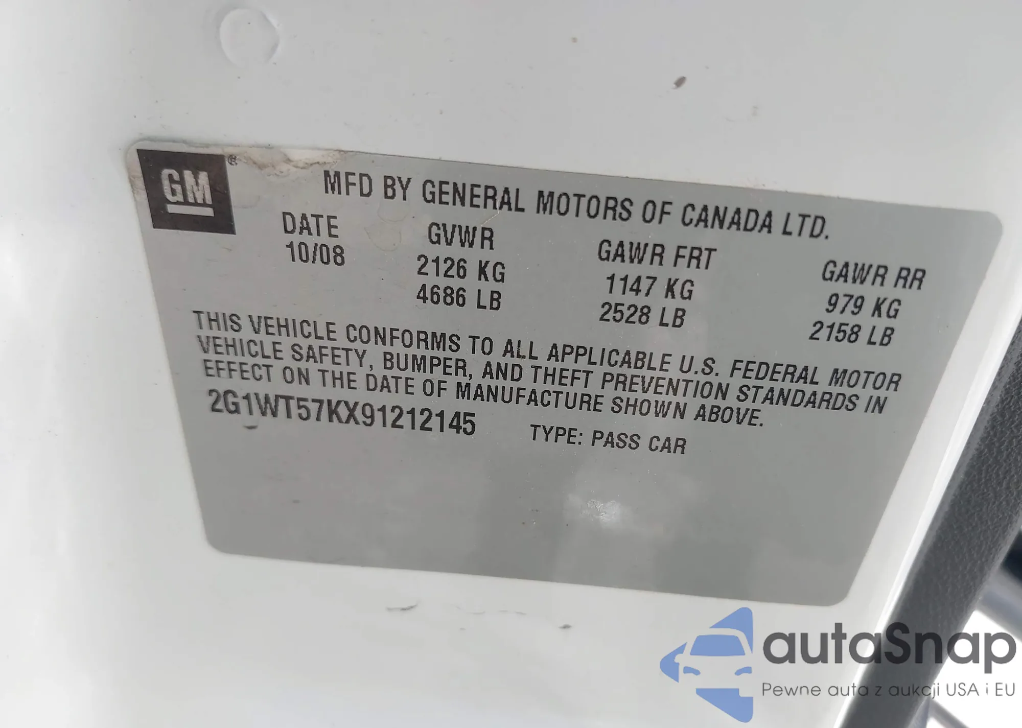 • VIN 2G1WT57KX91212145