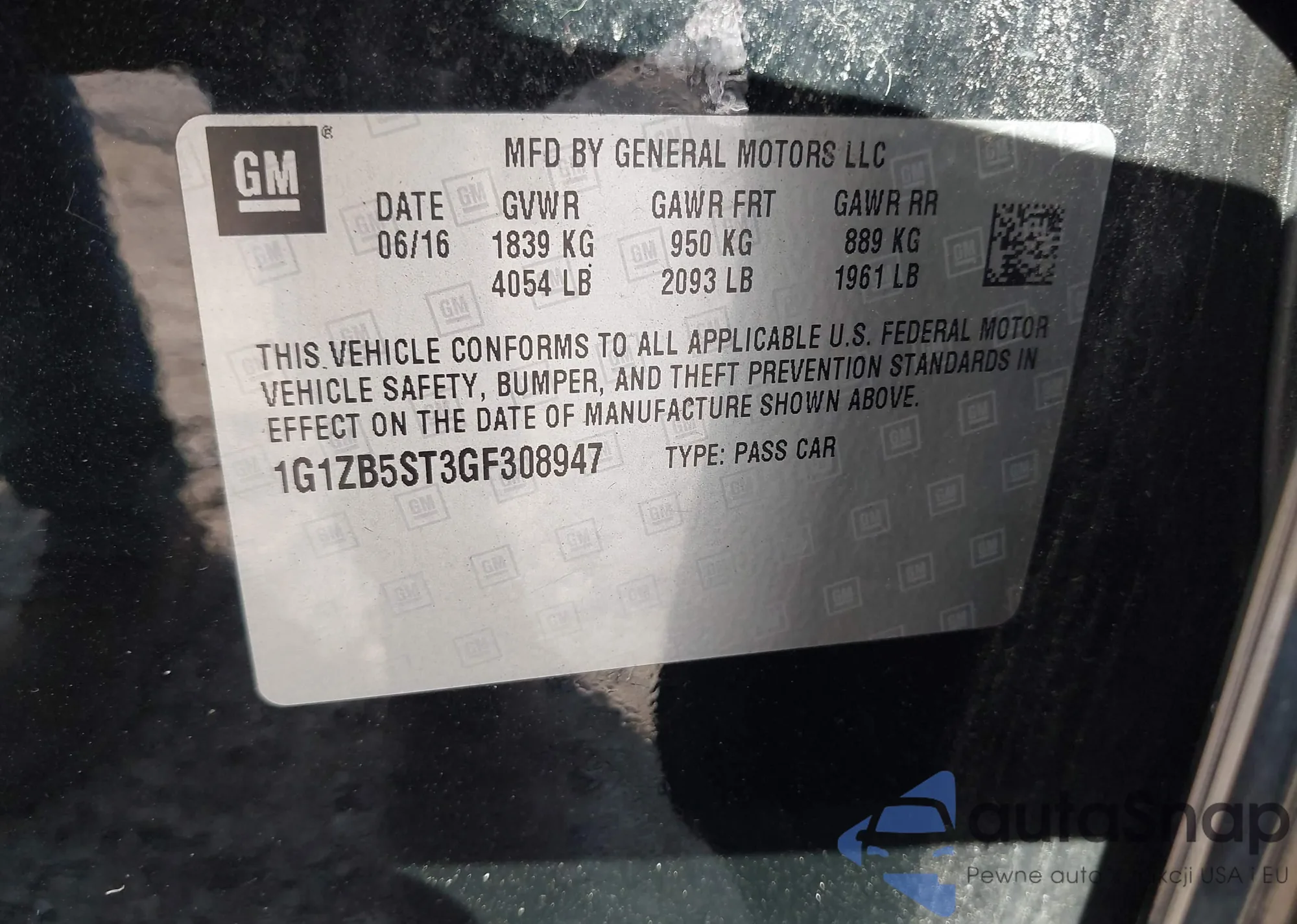• VIN 1G1ZB5ST3GF308947