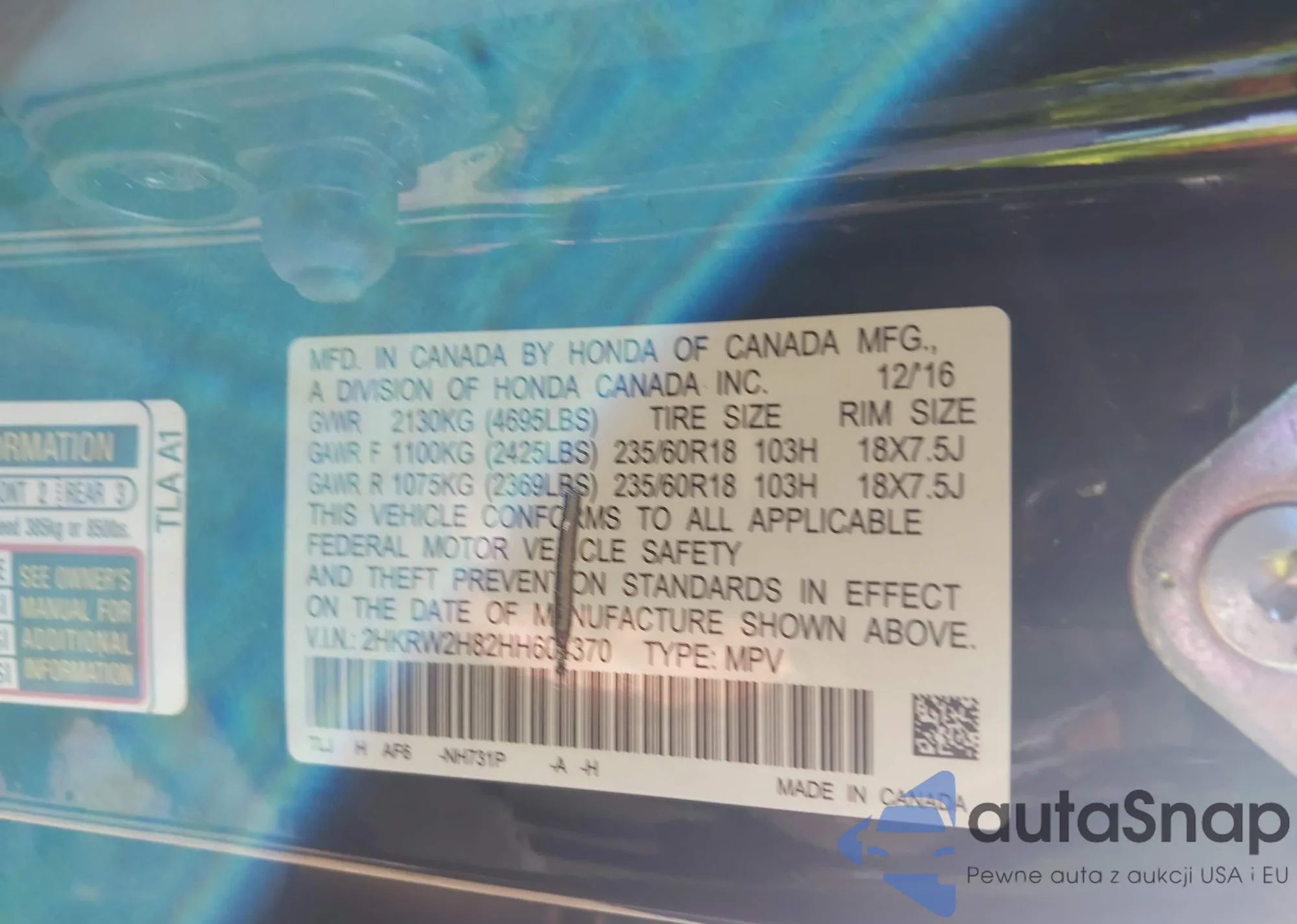 • VIN 5FNRL5H99FB124583