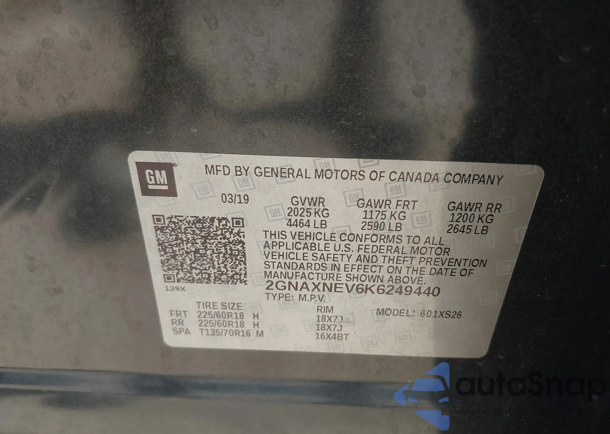 • VIN 2GNAXNEV6K6249440