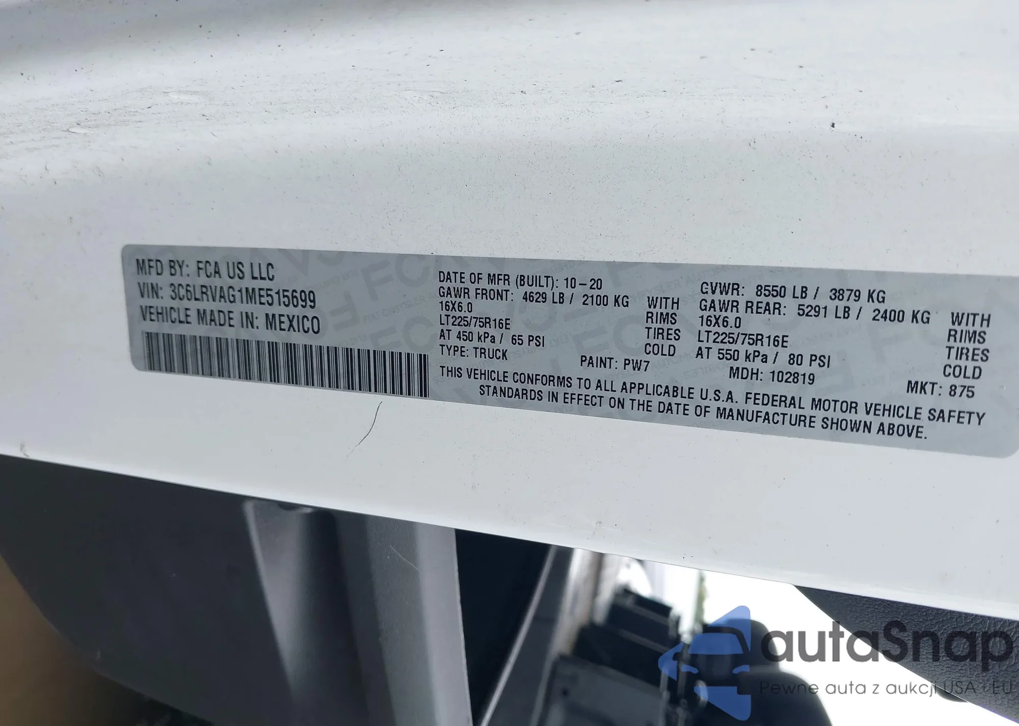 • VIN 3C6LRVAG1ME515699