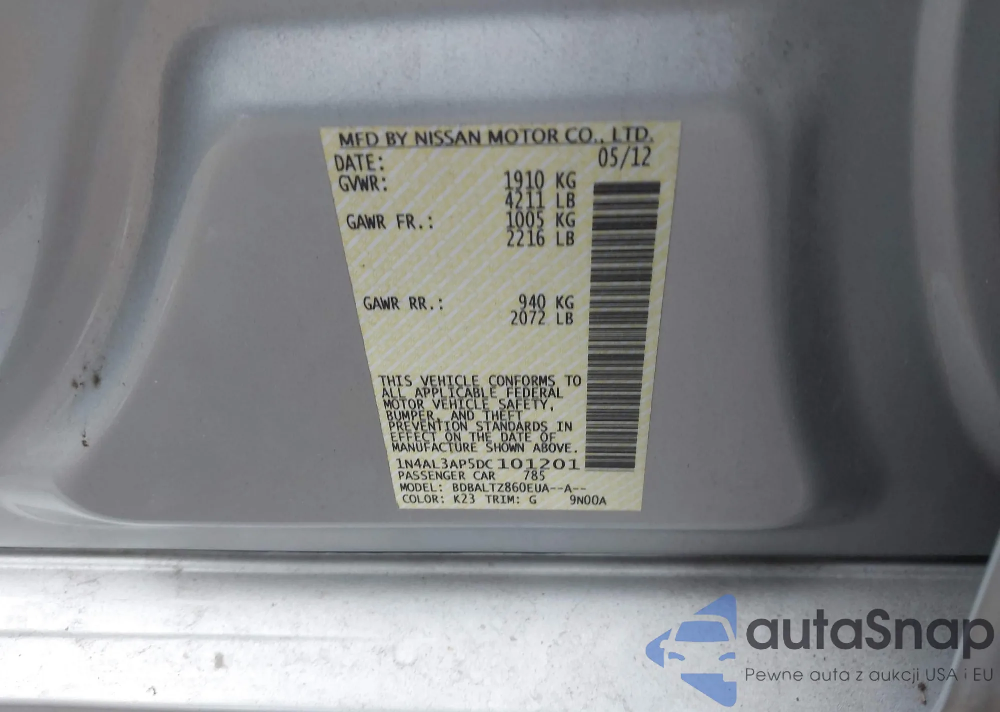 LOT: 43265191 VIN: 5N1BA08A47N712913