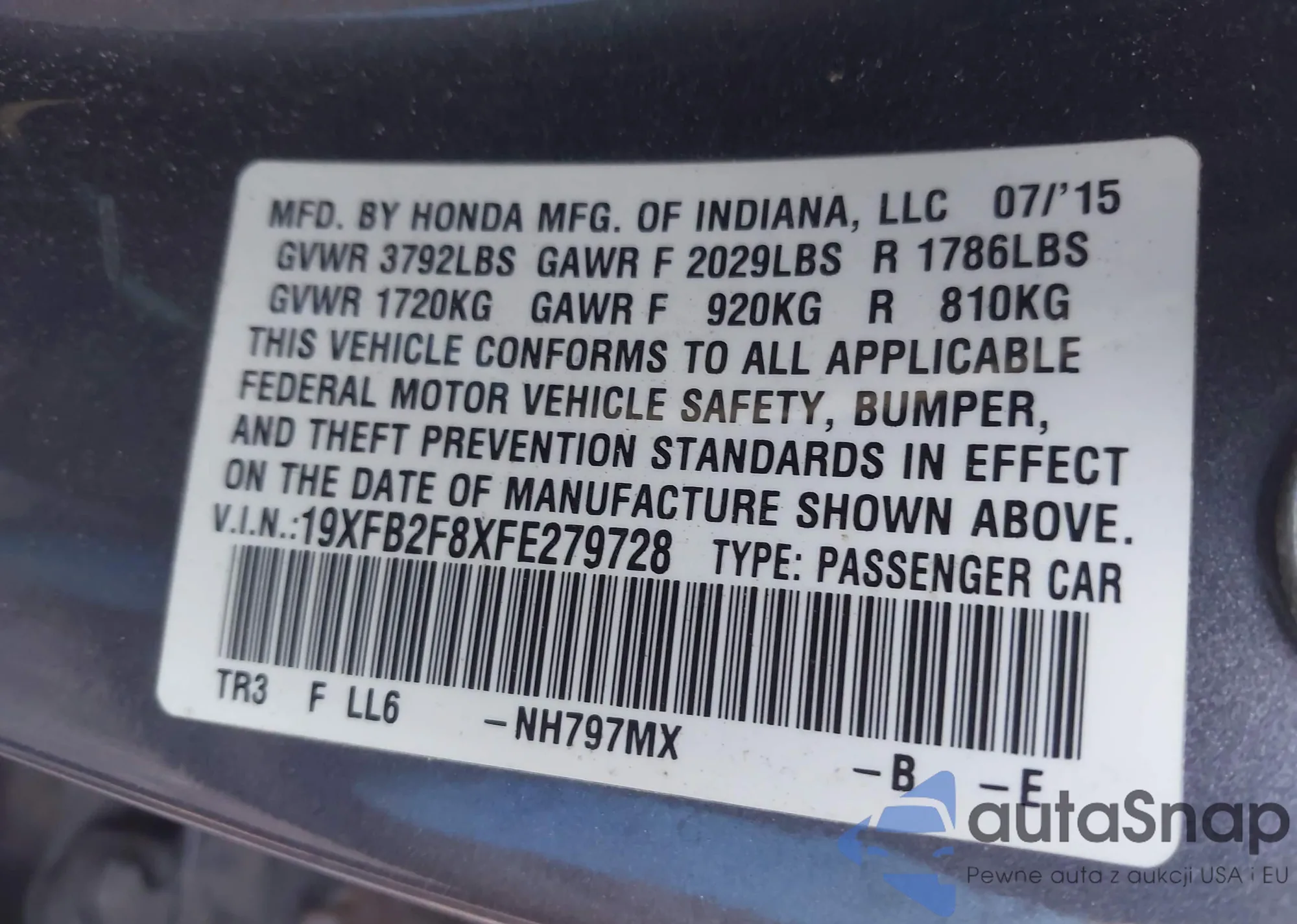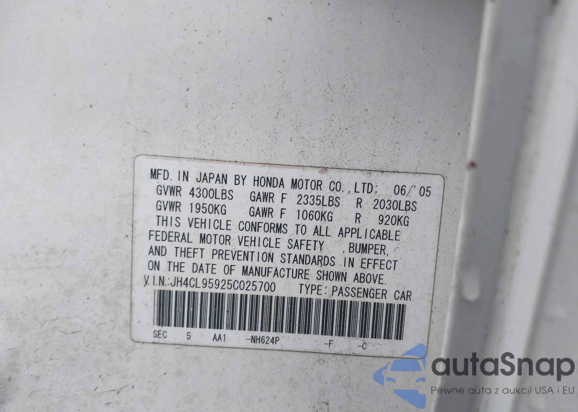 • VIN 5J6RM4H79CL005618
