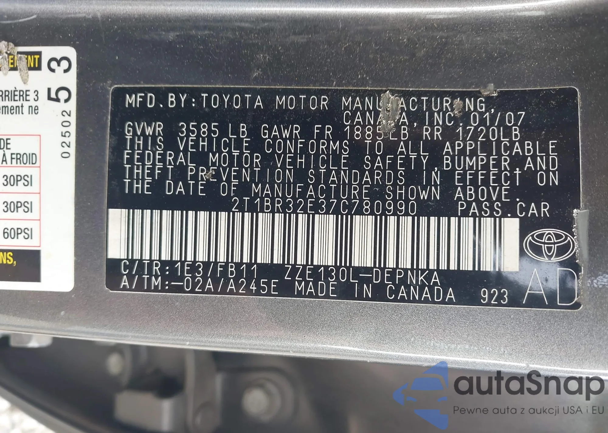• VIN 2T1BR32E37C780990