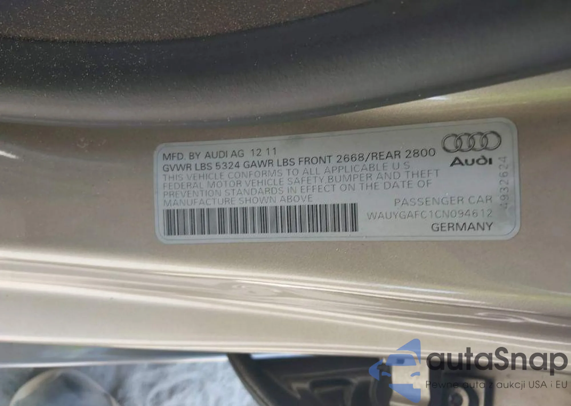 • VIN WAUYGAFC1CN094612