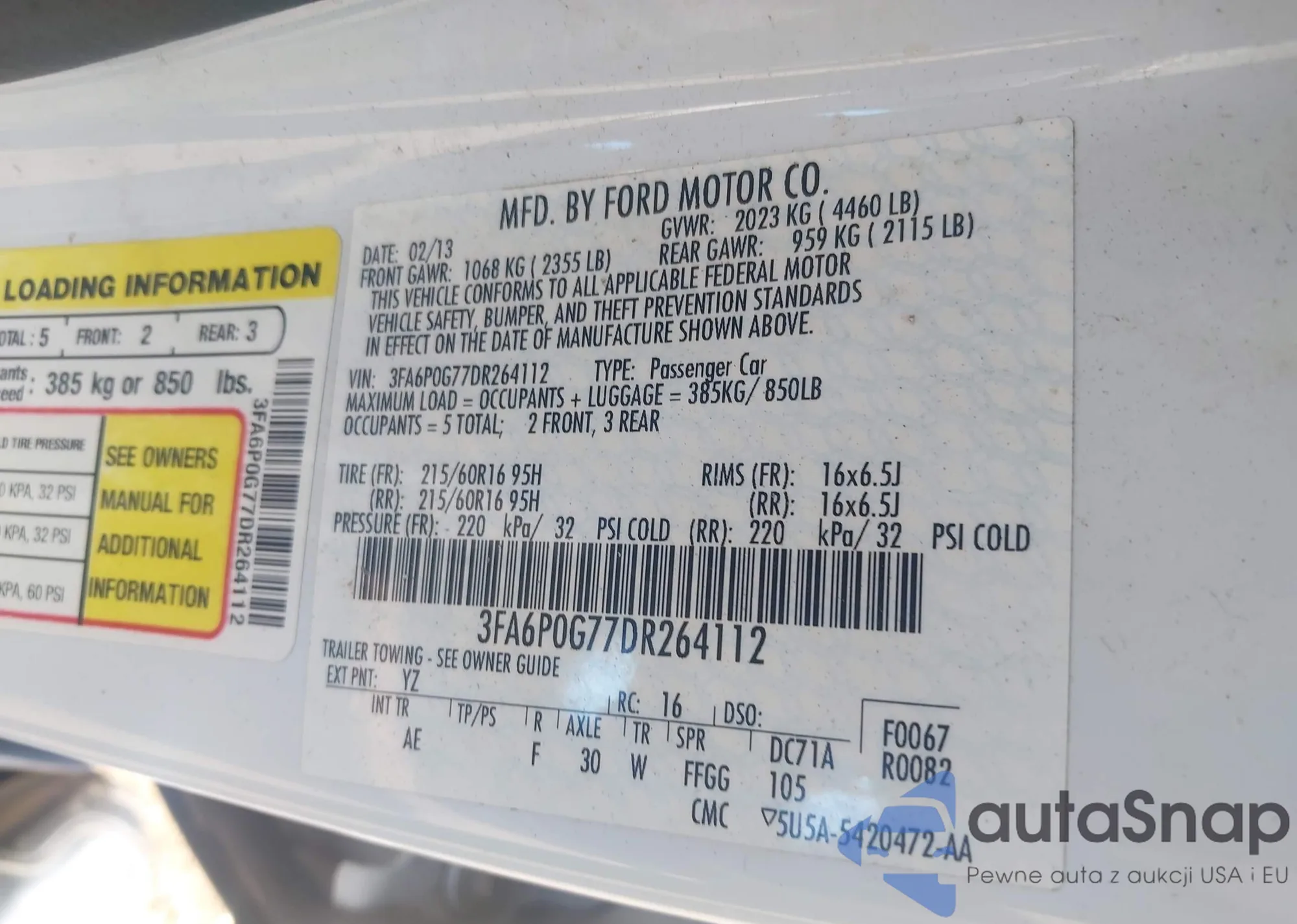 LOT: 43139531 VIN: 5NPEB4AC6DH652016
