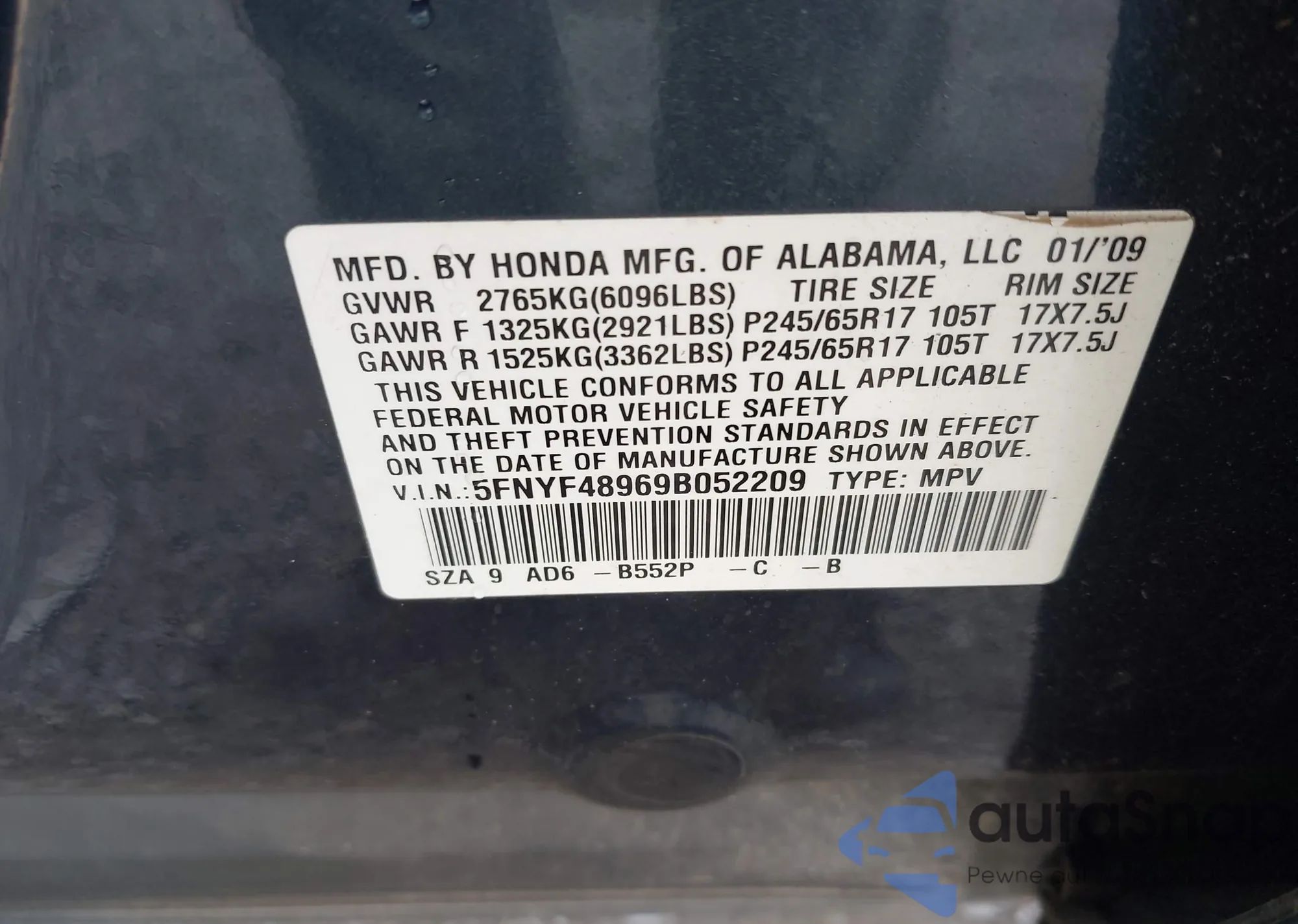 • VIN 5FNYF48969B052209