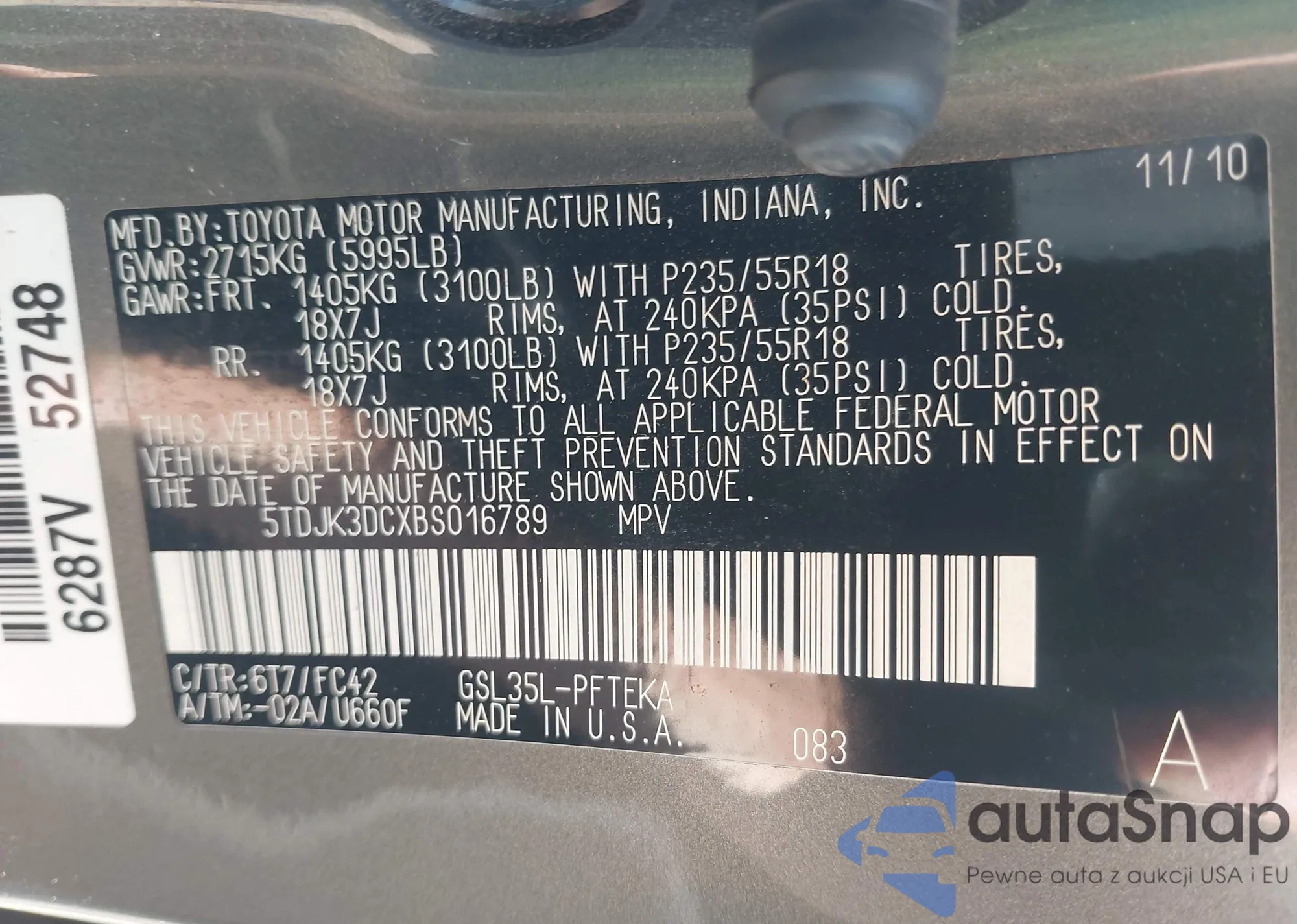 • VIN 5TDJK3DCXBS016789