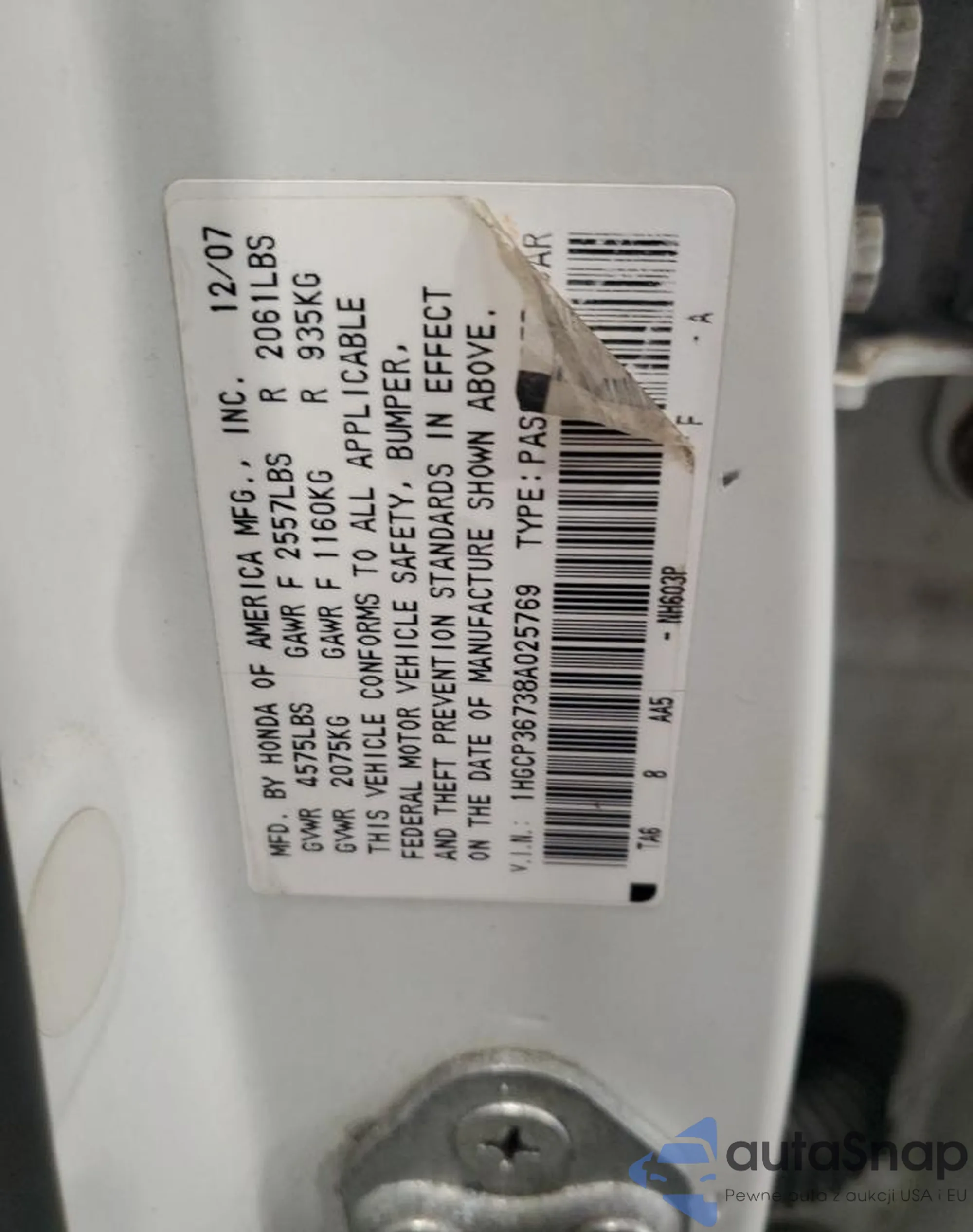LOT: 71682275 VIN: 19XFA16859E010828