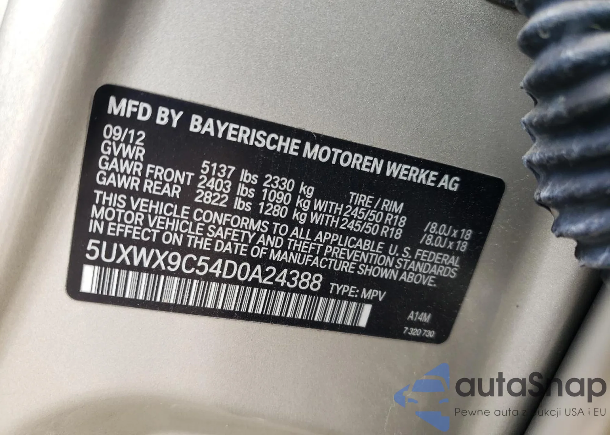 LOT: 63945015 VIN: WBAXH5C58DDW16813