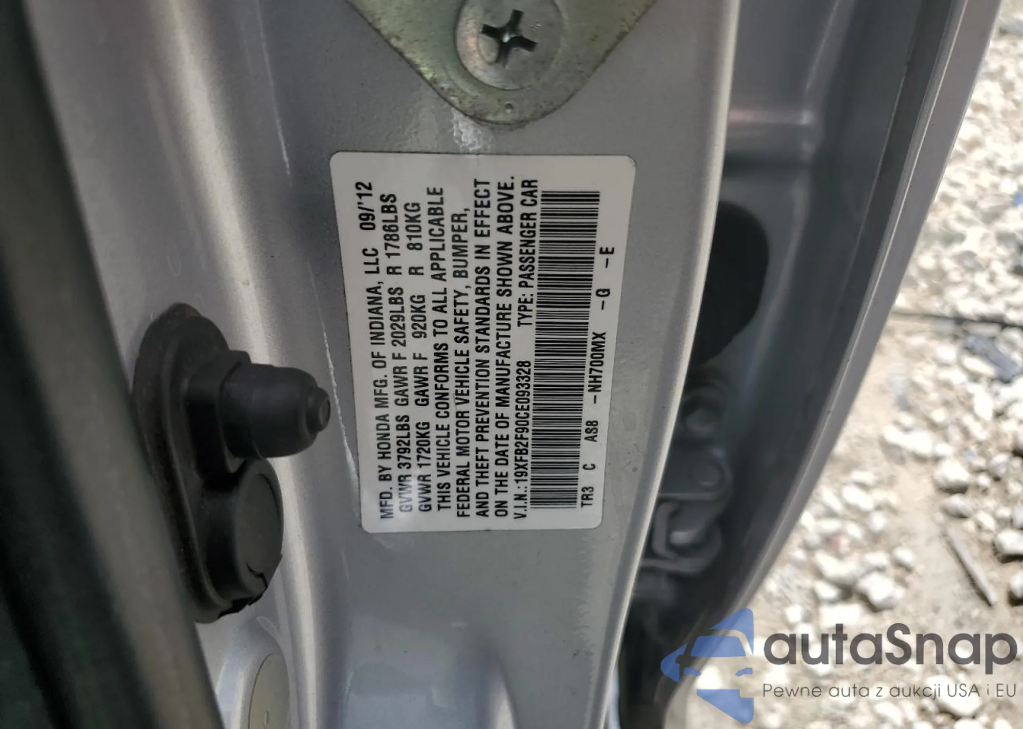 LOT: 80858275 VIN: 19XFB2F90CE093328