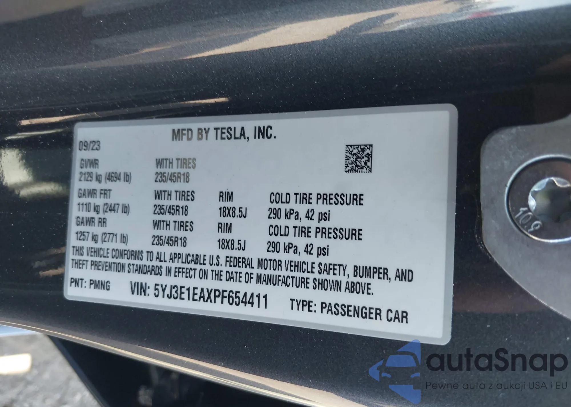 • VIN 5YJ3E1EAXPF654411