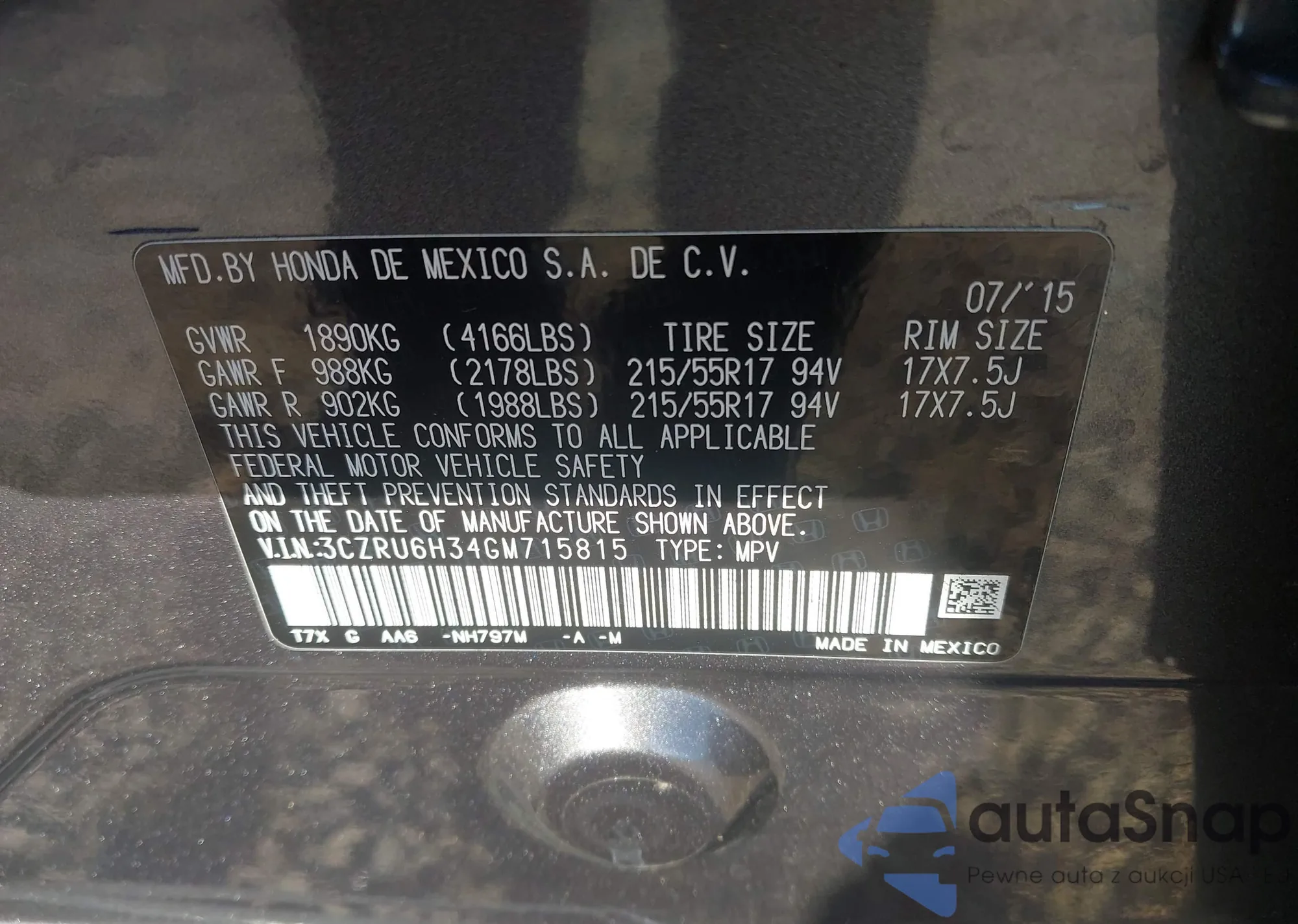 • VIN 3CZRU6H34GM715815