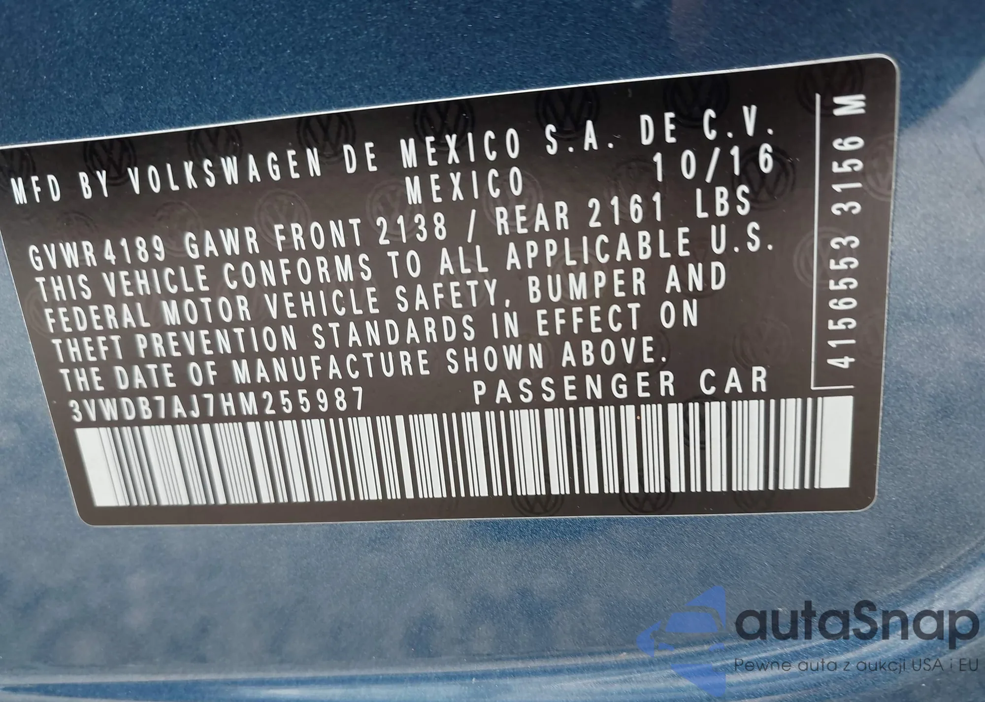 • VIN 3VWDB7AJ7HM255987
