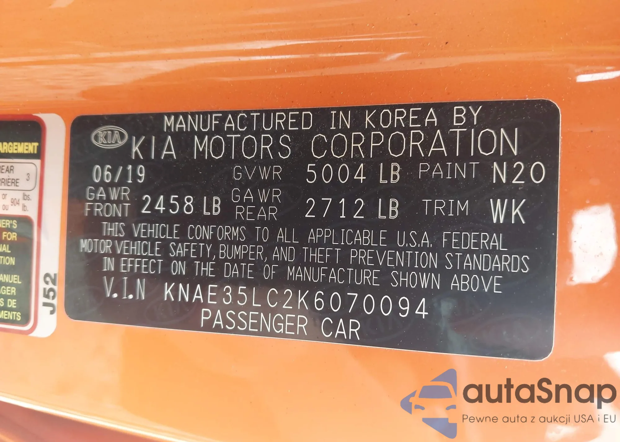 • VIN 19UDE4H38PA020074