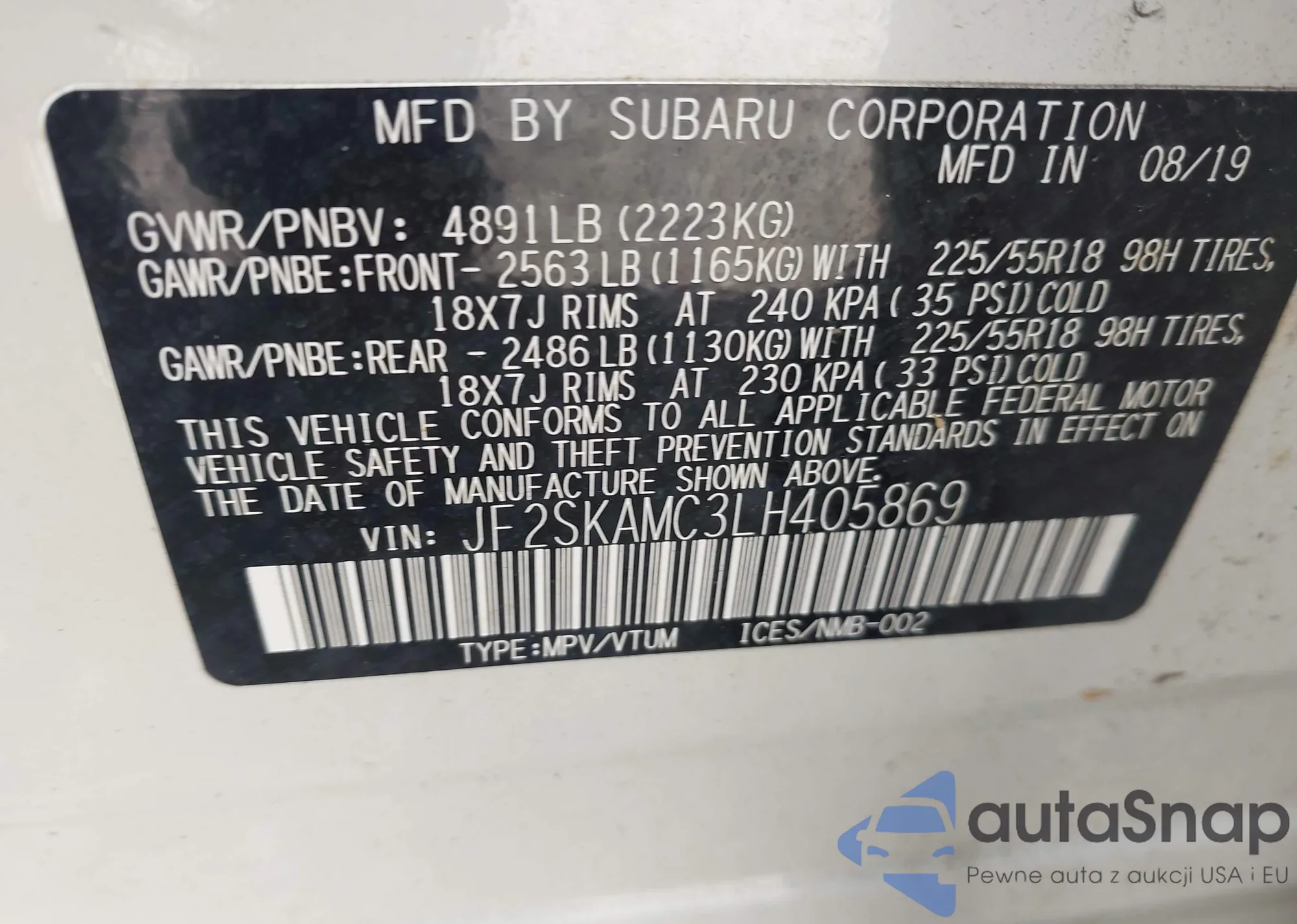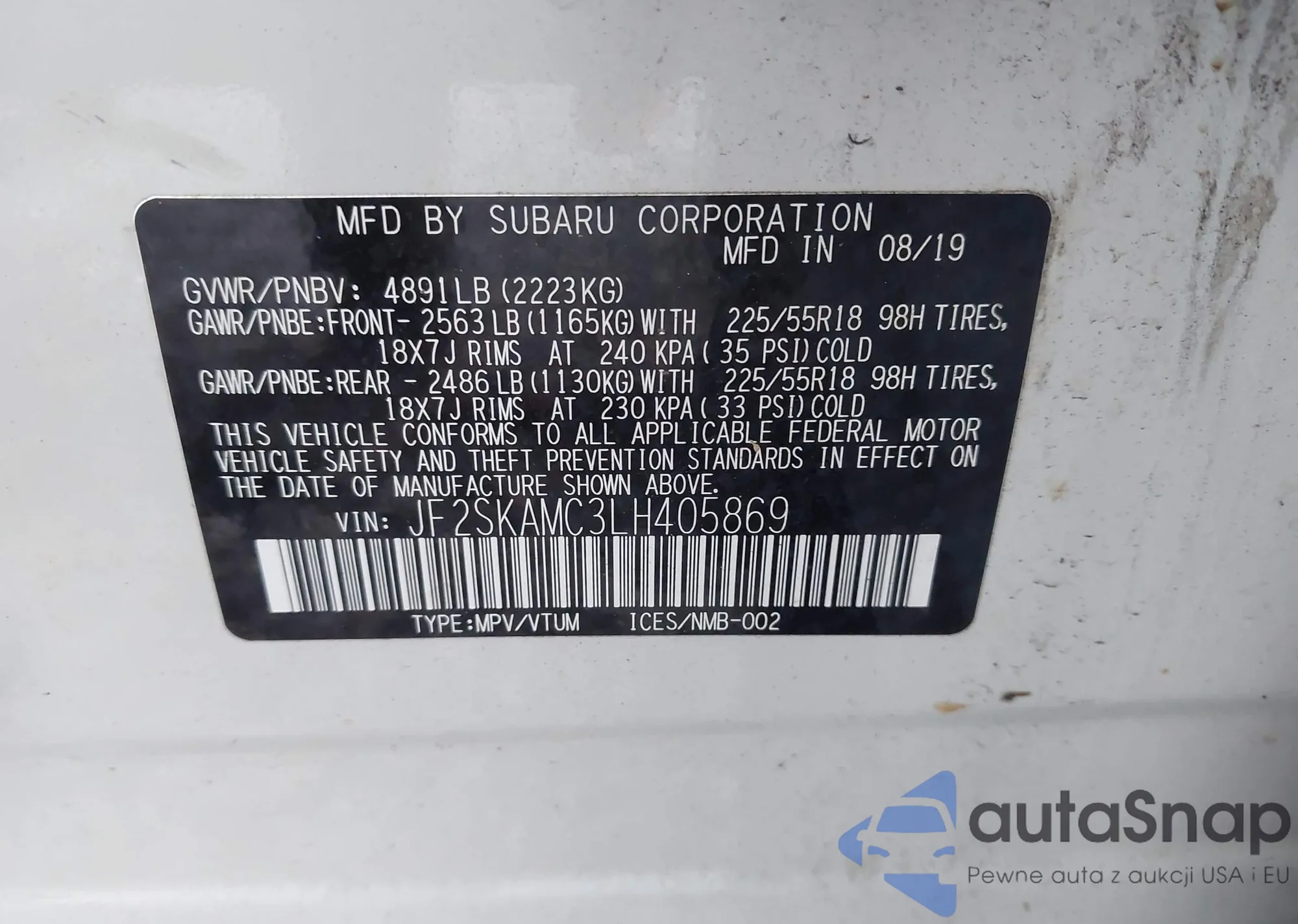 LOT: 42555180 VIN: 19UDE4H38PA020074