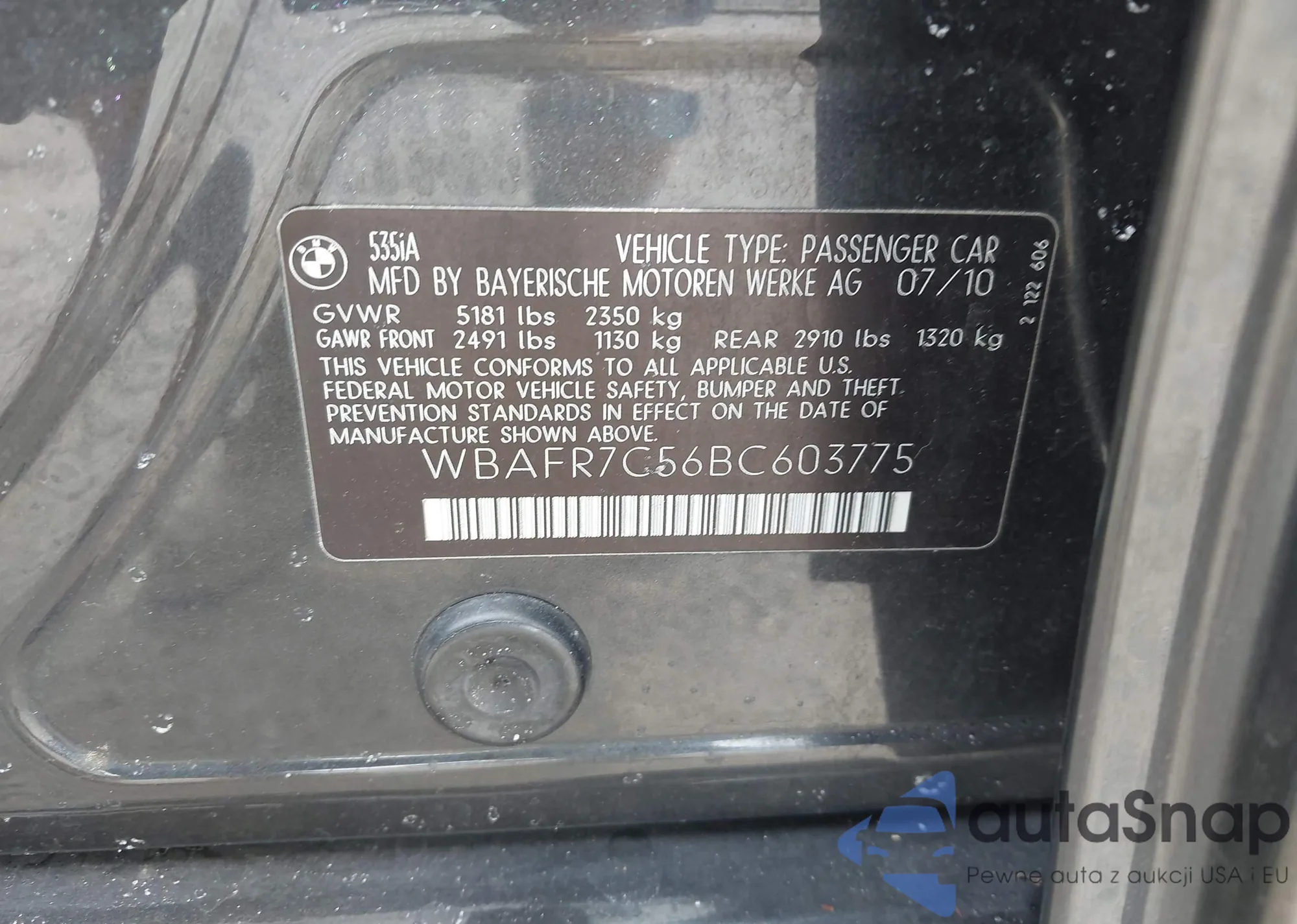 • VIN WBAFR7C56BC603775