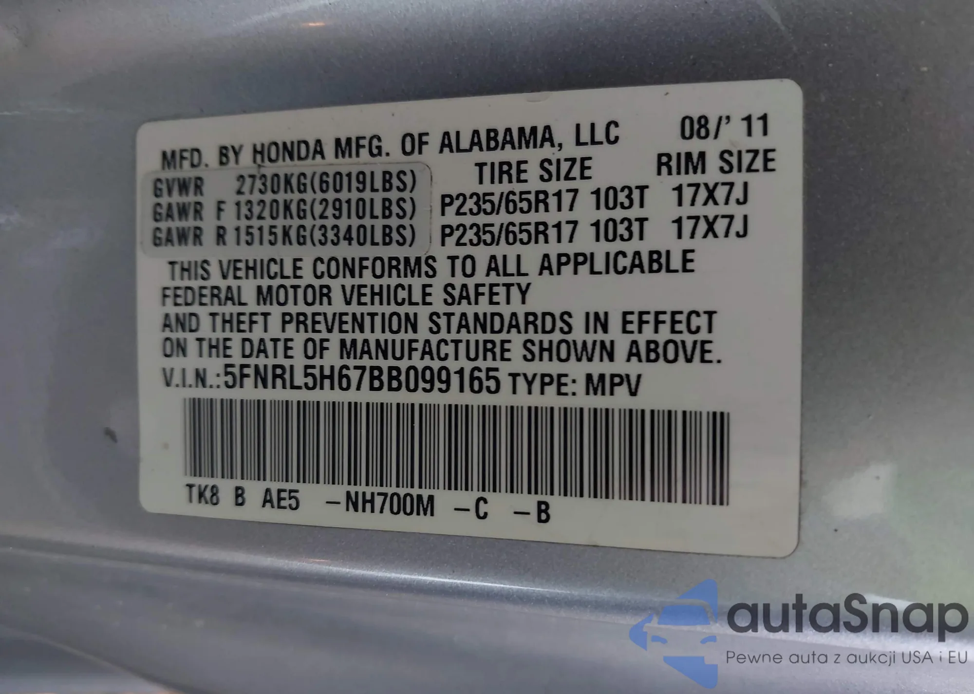 • VIN KL4CJCSM3KB745516