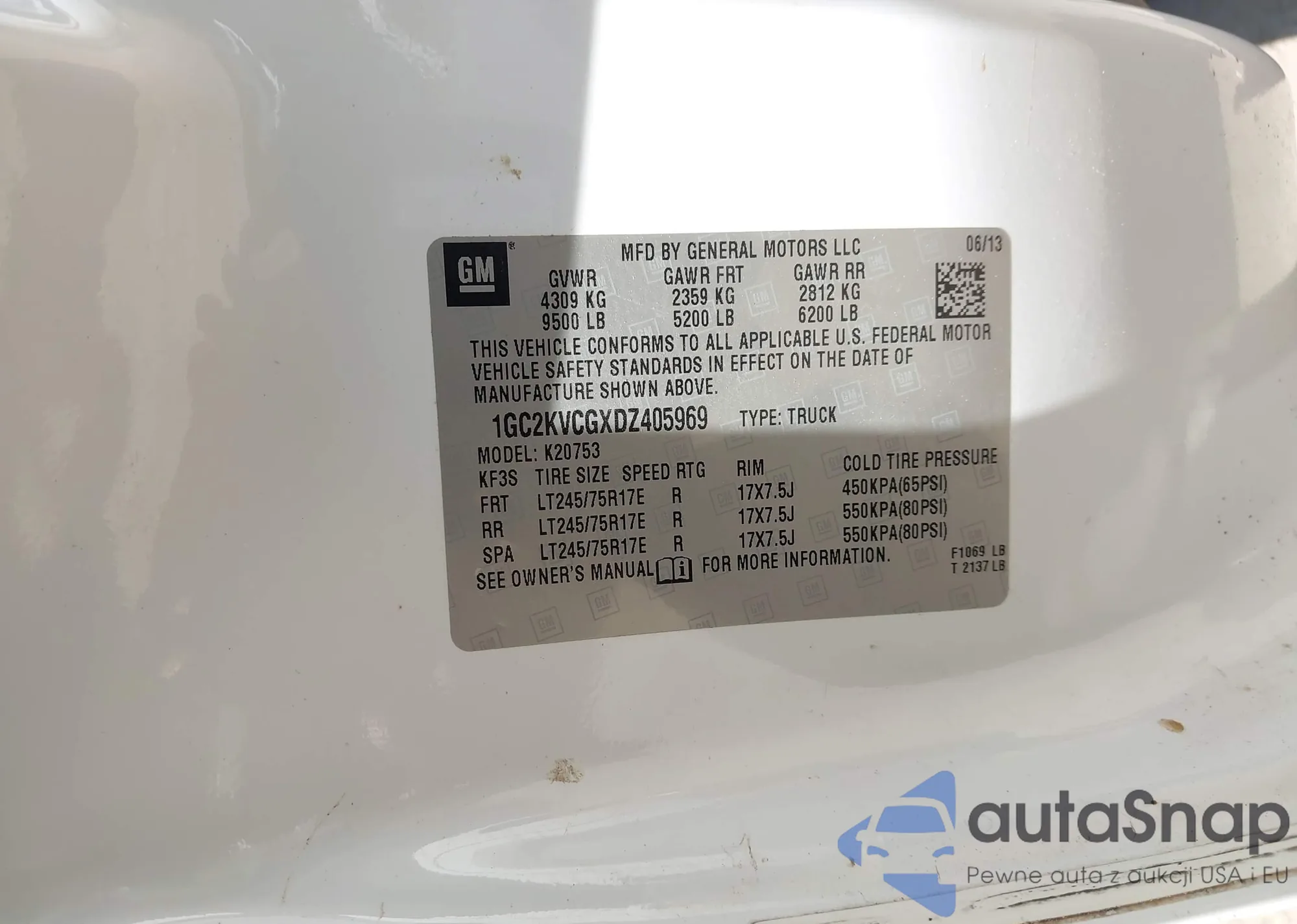 • VIN 1GC2KVCGXDZ405969