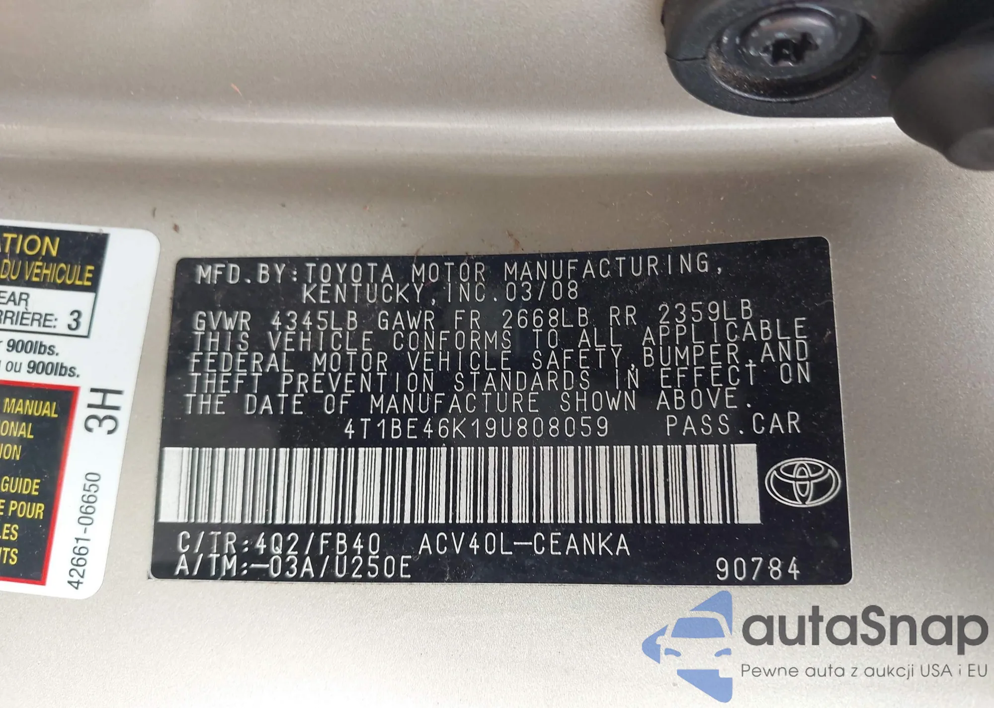 • VIN 4T1BF28B9YU042661