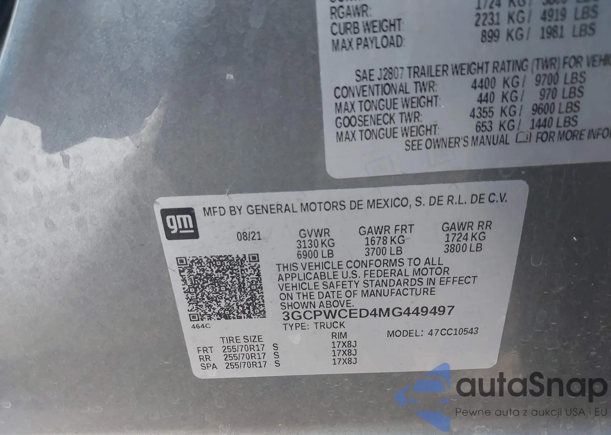 • VIN 3GCPWCED4MG449497