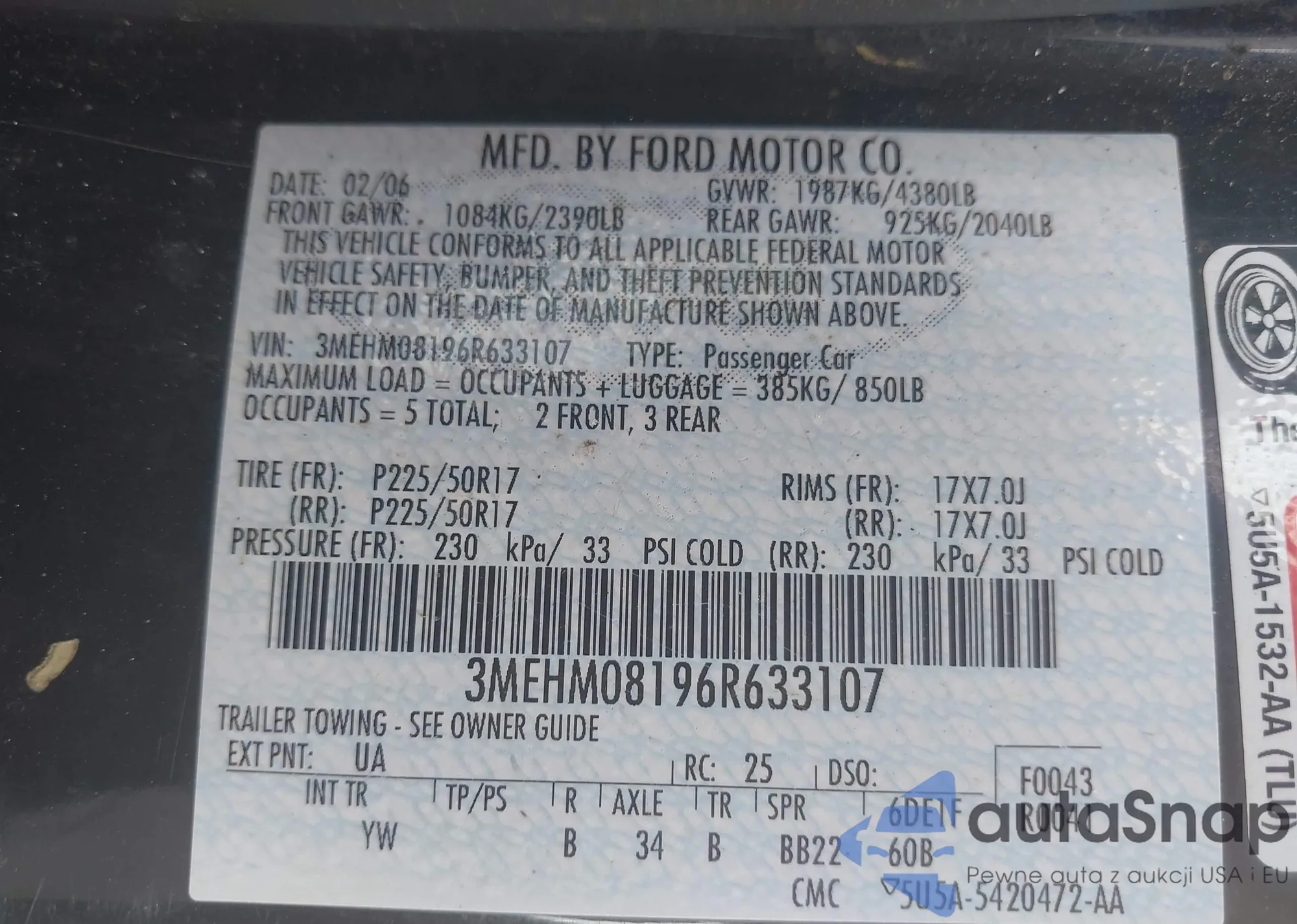 • VIN 3MEHM08196R633107