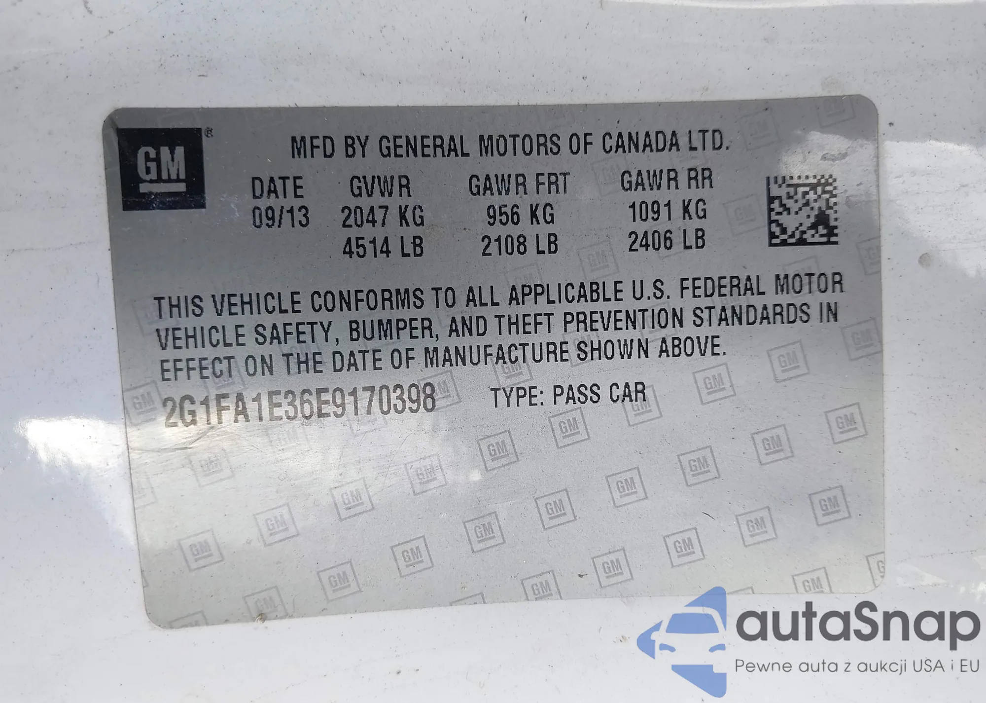 LOT: 43116117 VIN: 2G1FA1E36E9170398