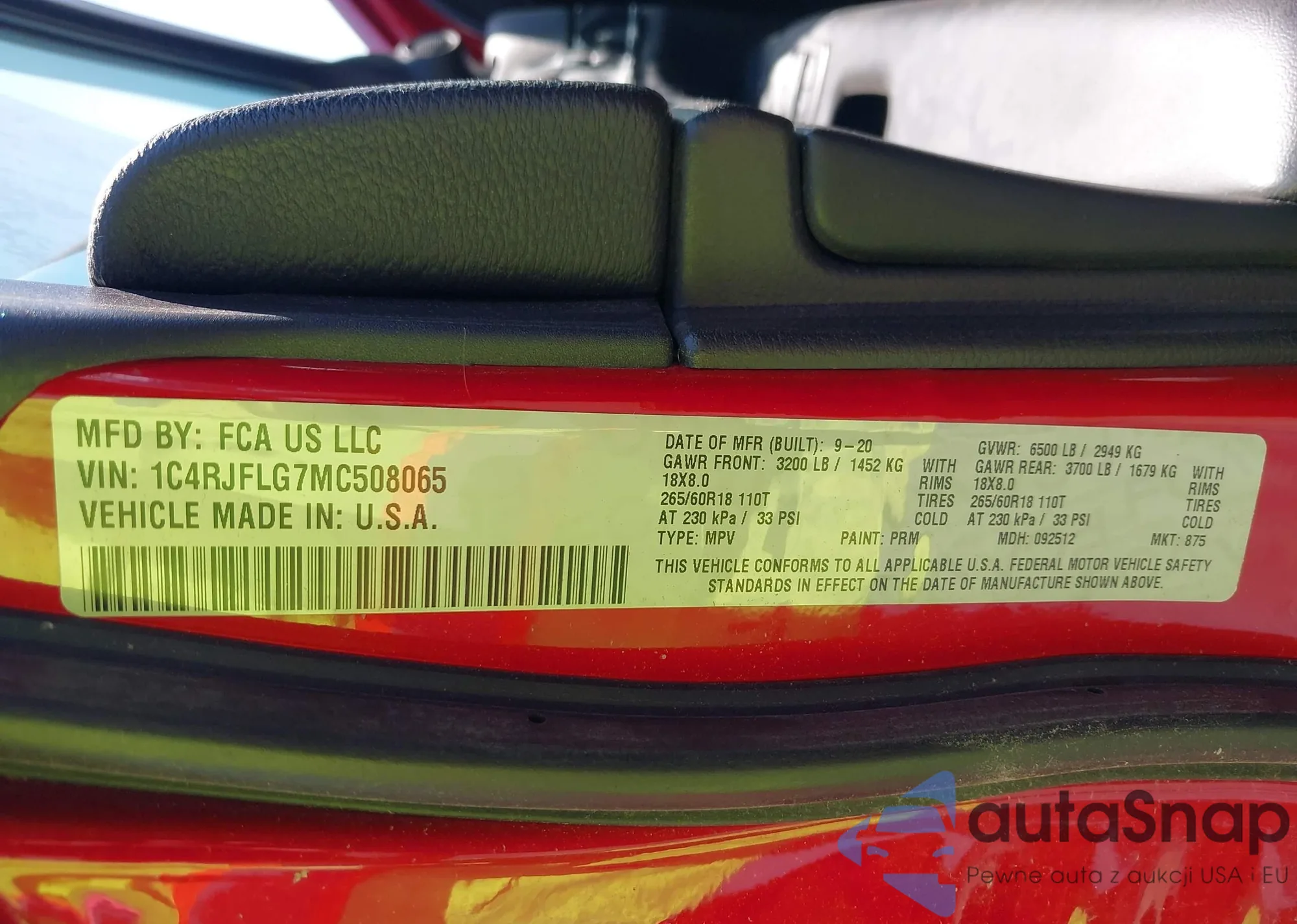 • VIN 1C4RJFLG7MC508065
