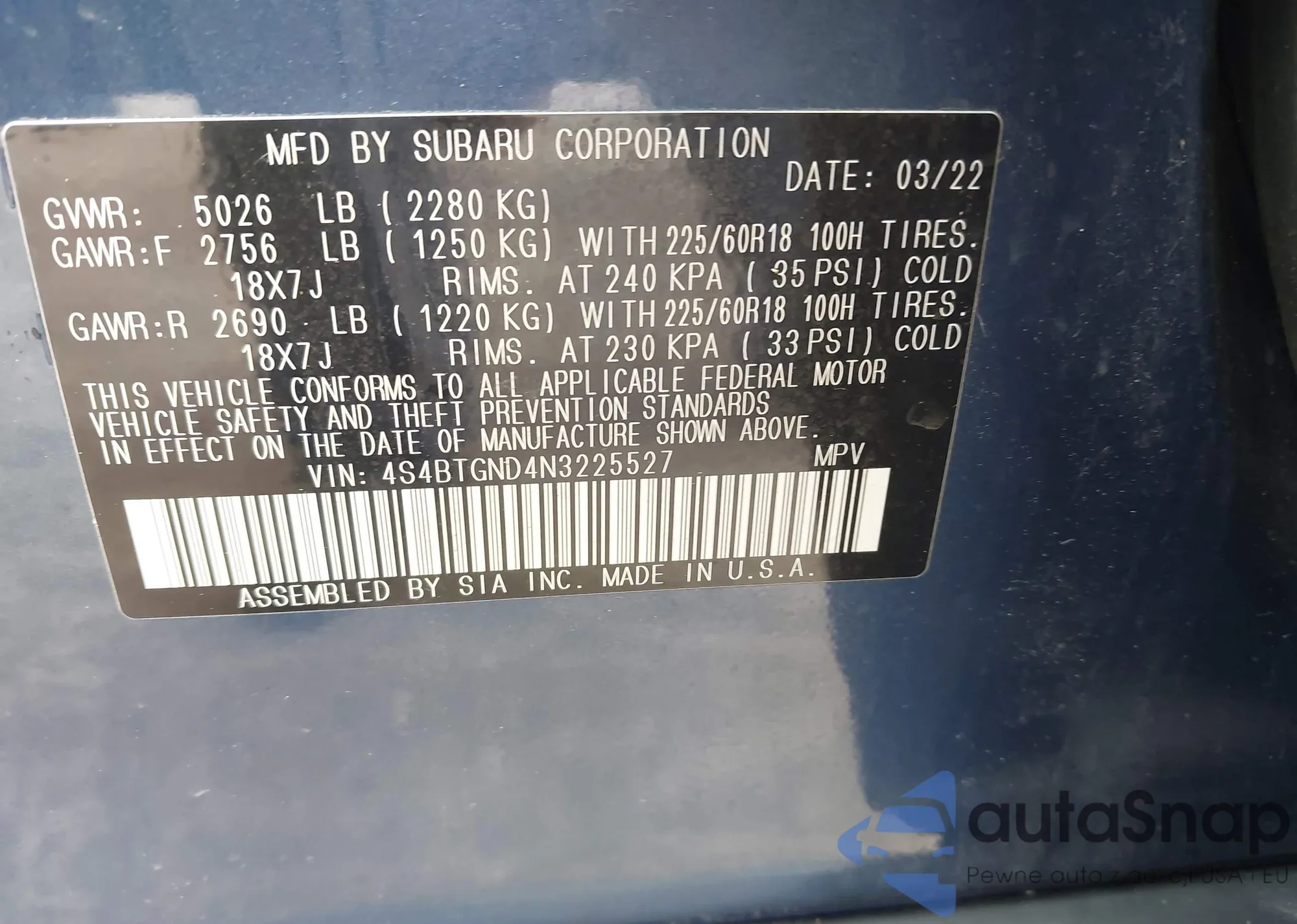 • VIN 4S4BTGND4N3225527
