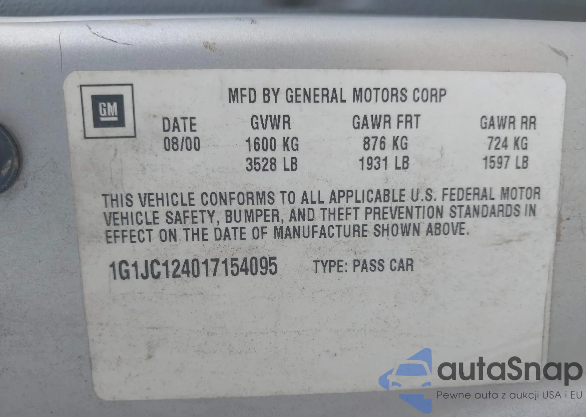 LOT: 43297110 VIN: 1G1JC124017154095