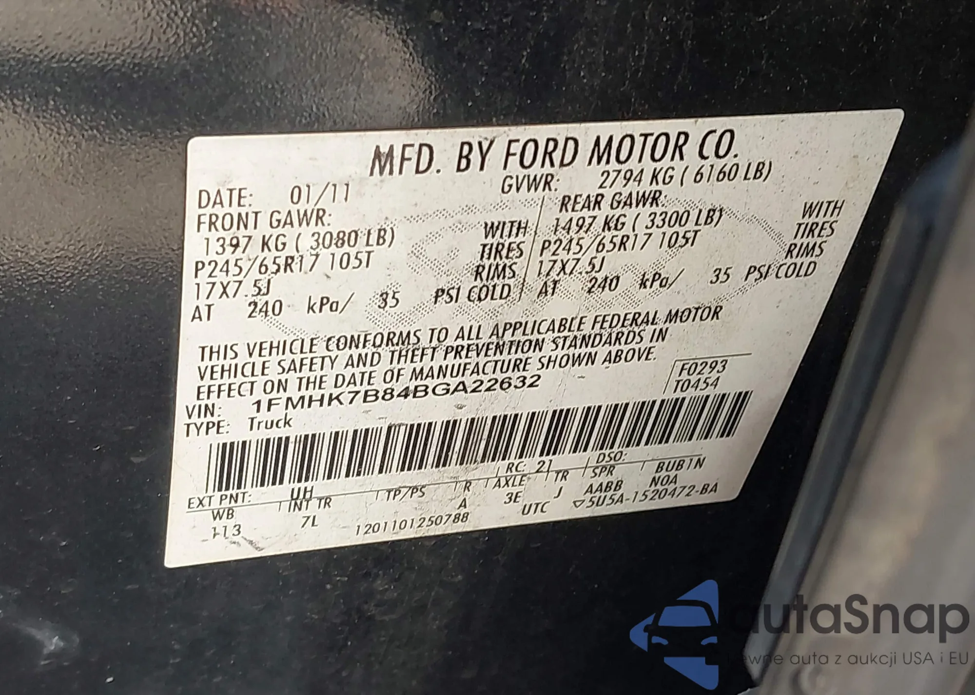 • VIN 1FTYR2CM5KKA15801