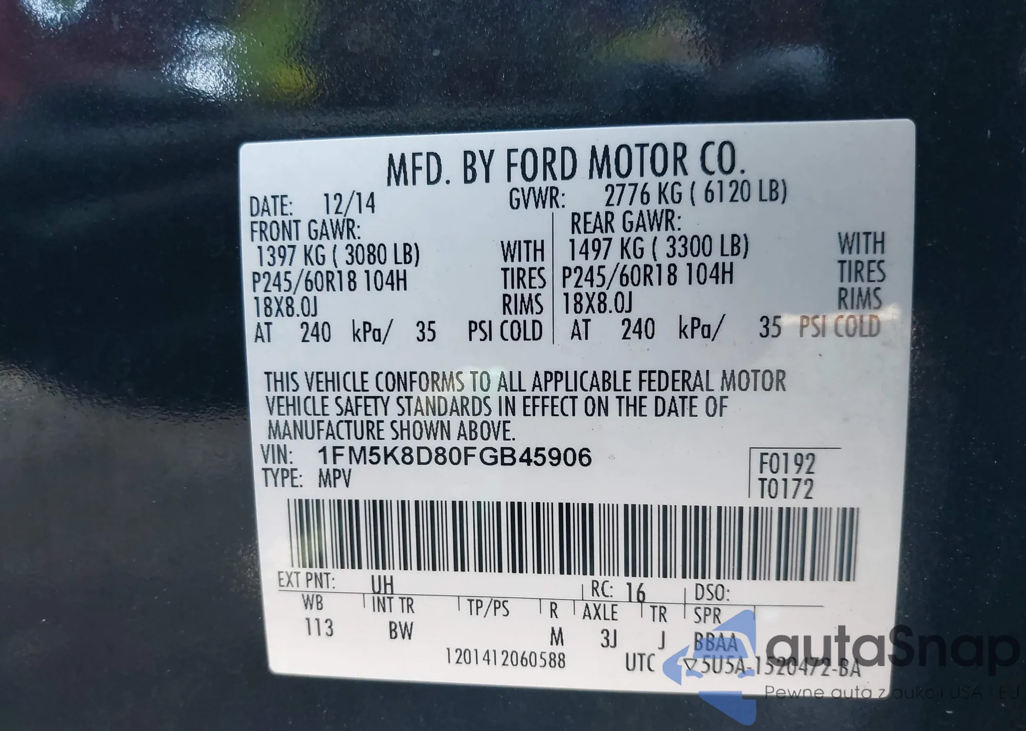 • VIN 1FMHK8D80CGA54305