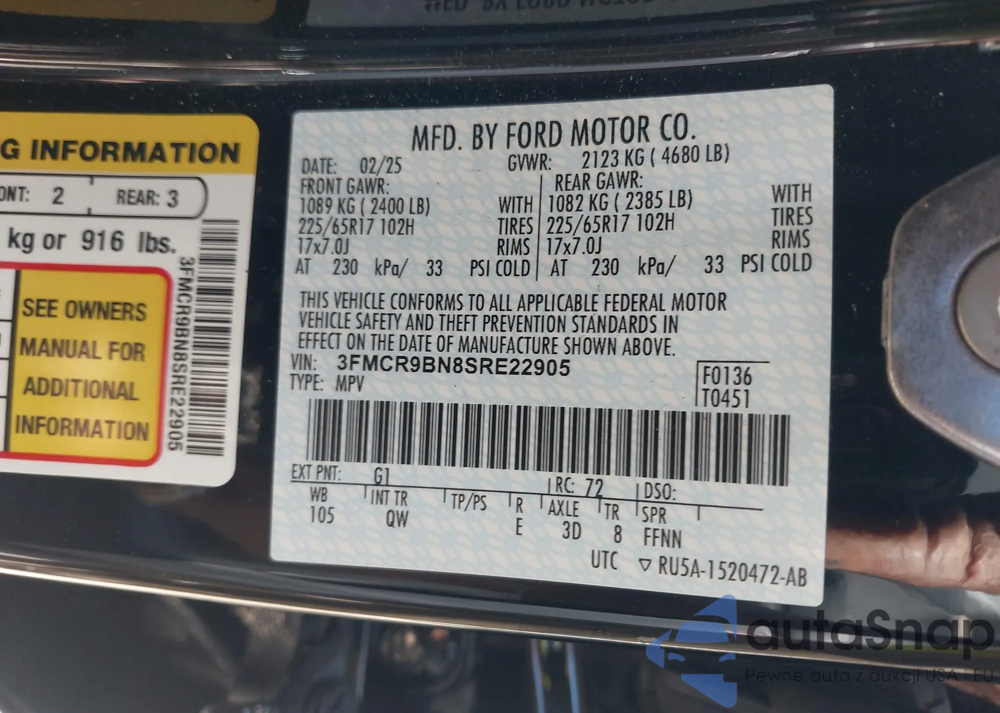 • VIN 3FMCR9BN8SRE22905