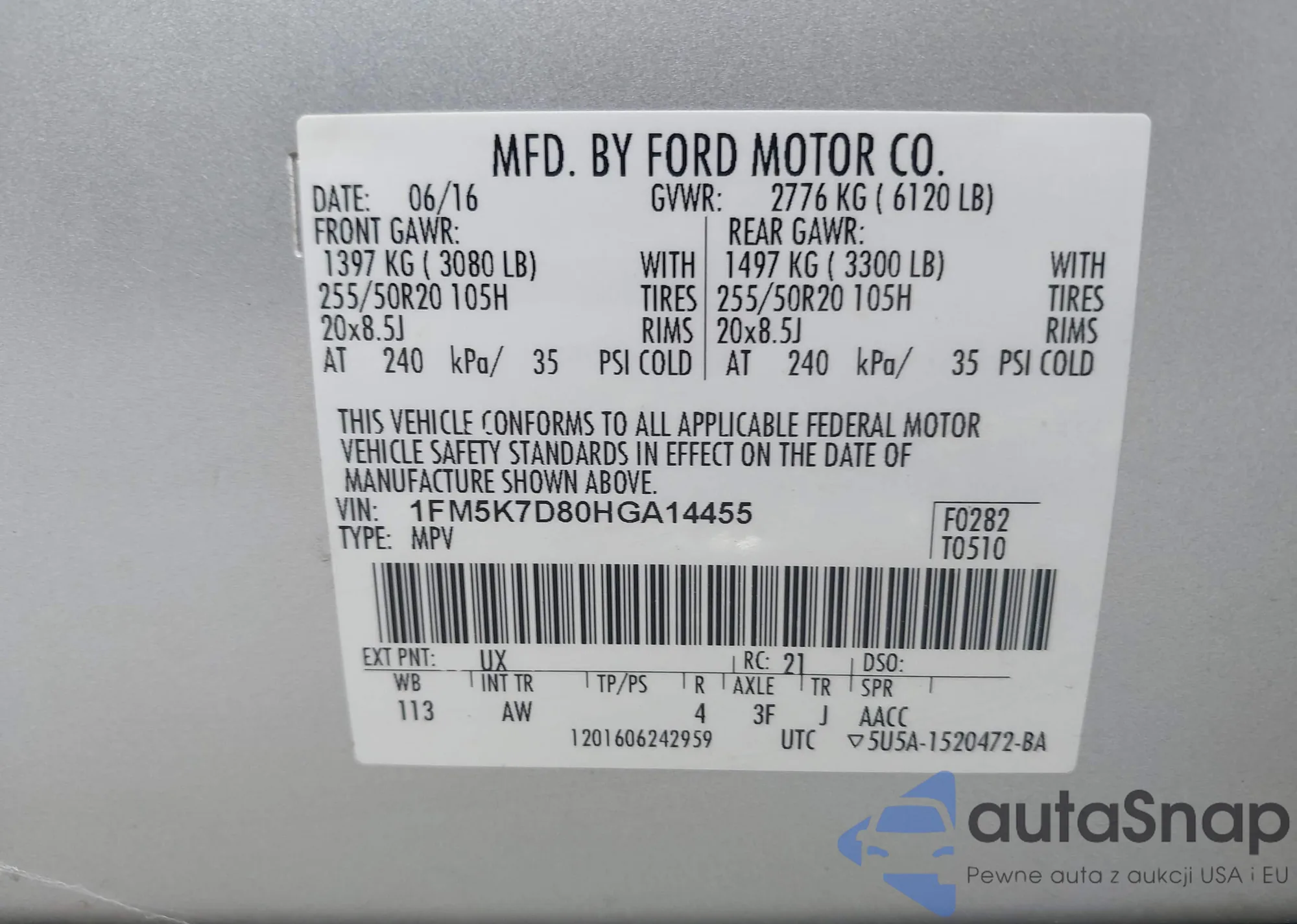 • VIN 1FM5K7D86EGA97269