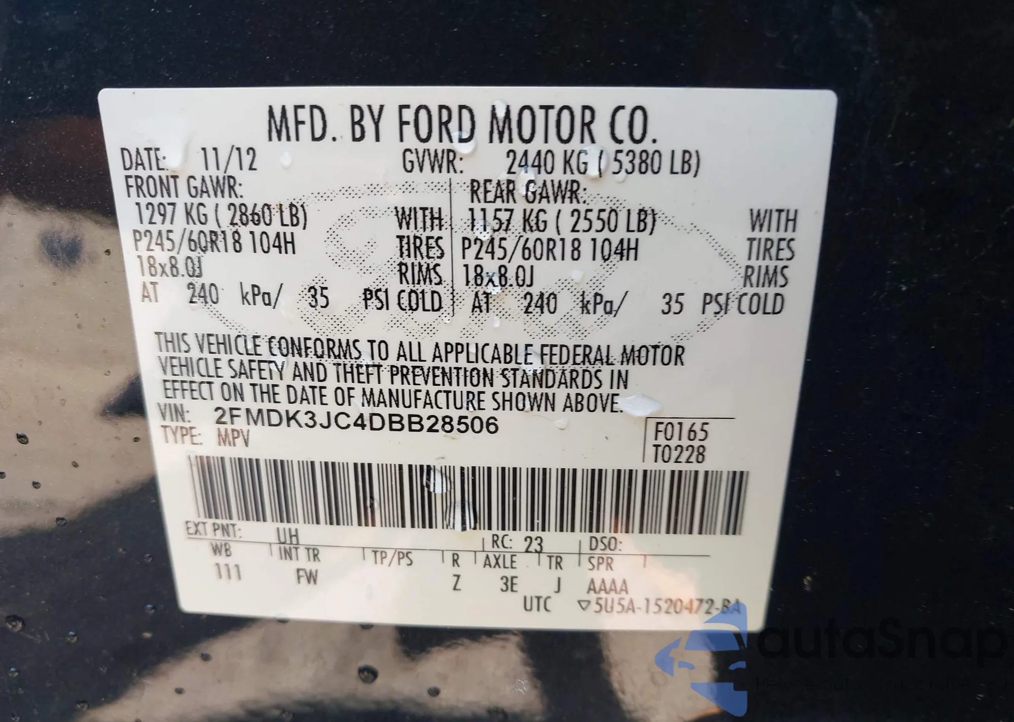 LOT: 43119385 VIN: 2FMDK3JC4DBB28506