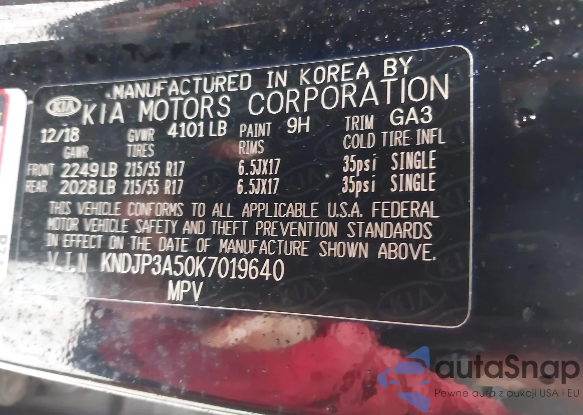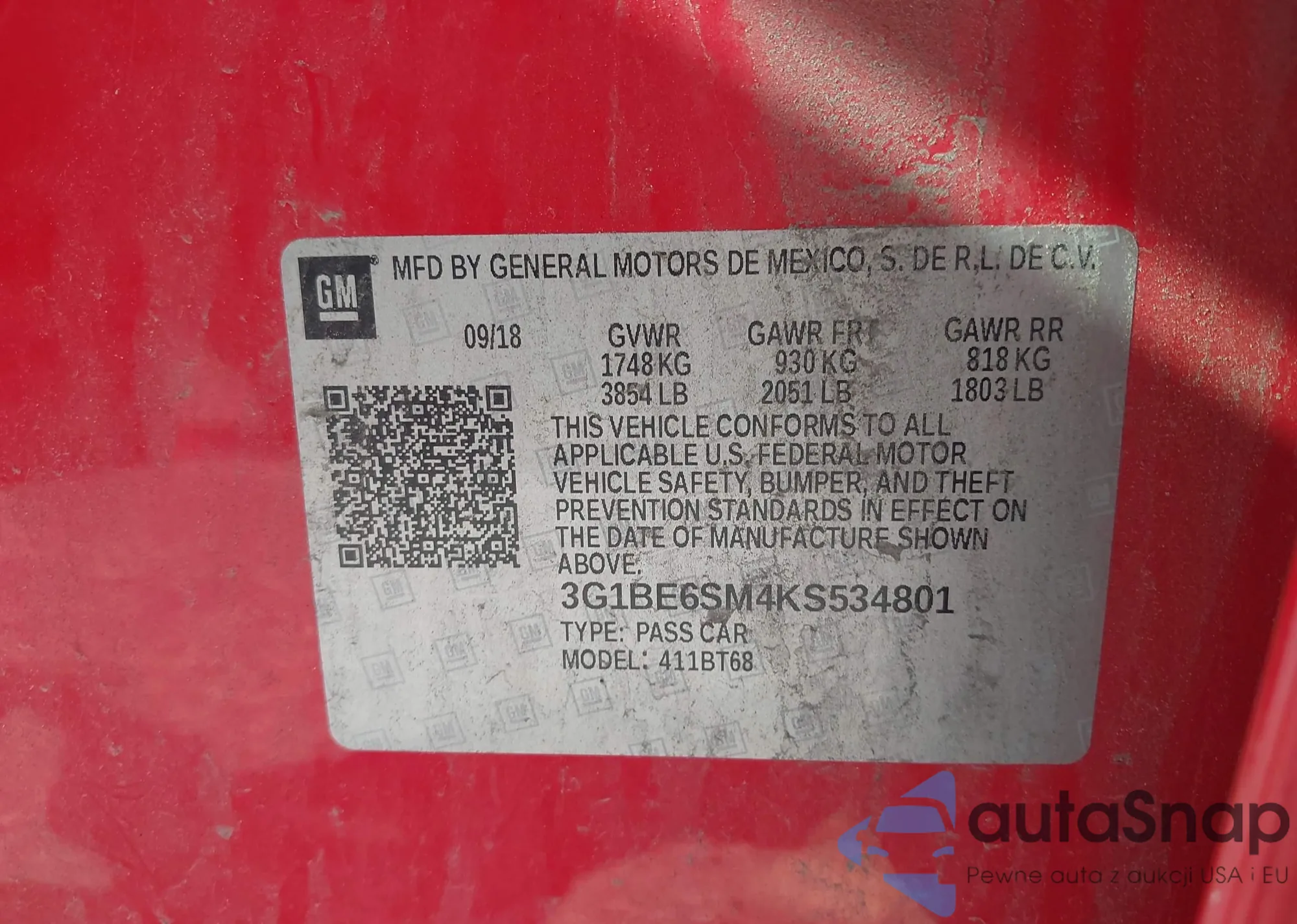 • VIN 3G1BE6SM4KS534801