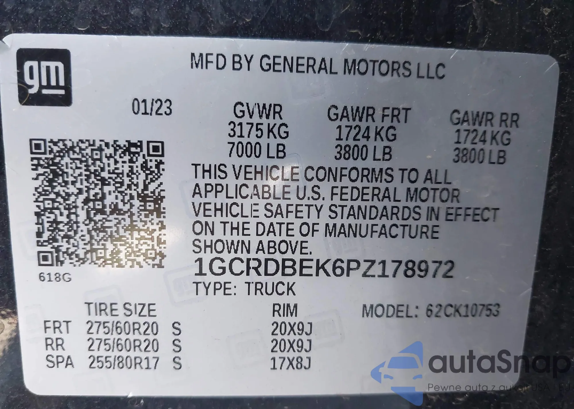 • VIN 1GCRDBEK6PZ178972