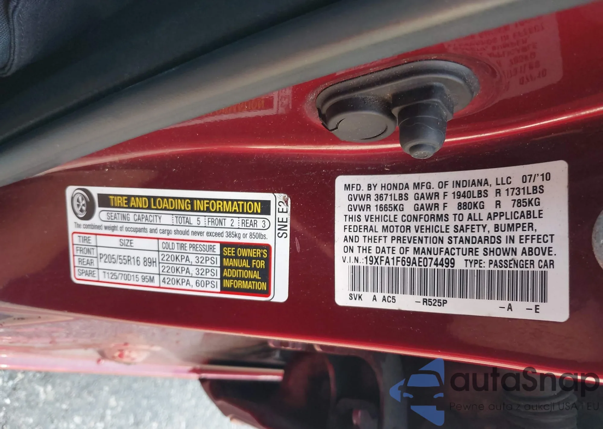 • VIN 19XFA1F69AE074499