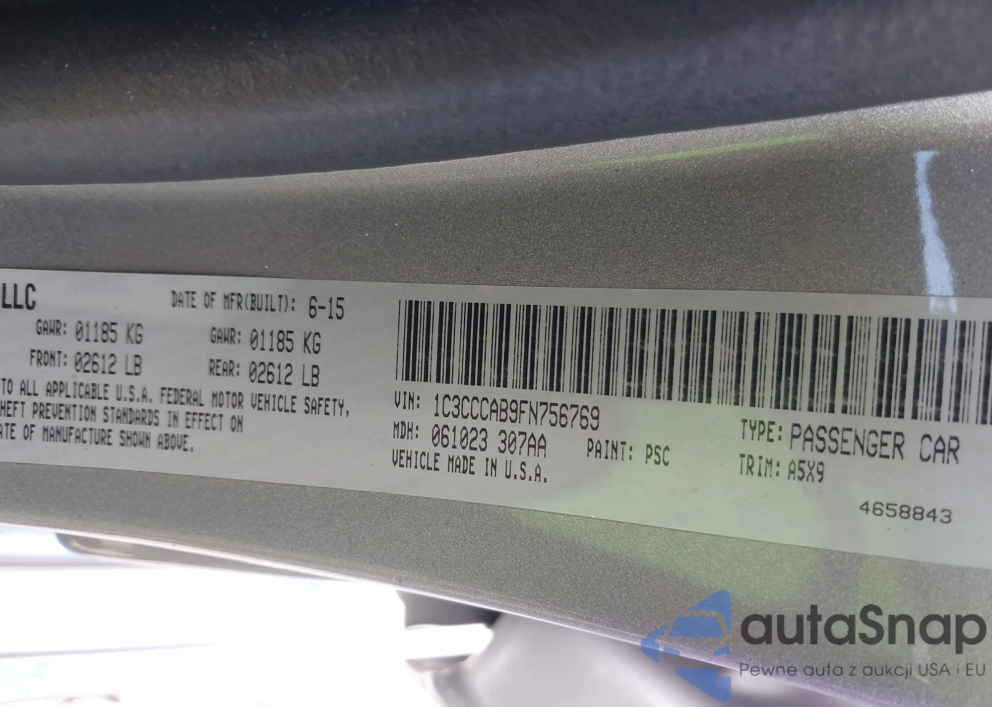 LOT: 42528918 VIN: 1C3CCCAB9FN756769