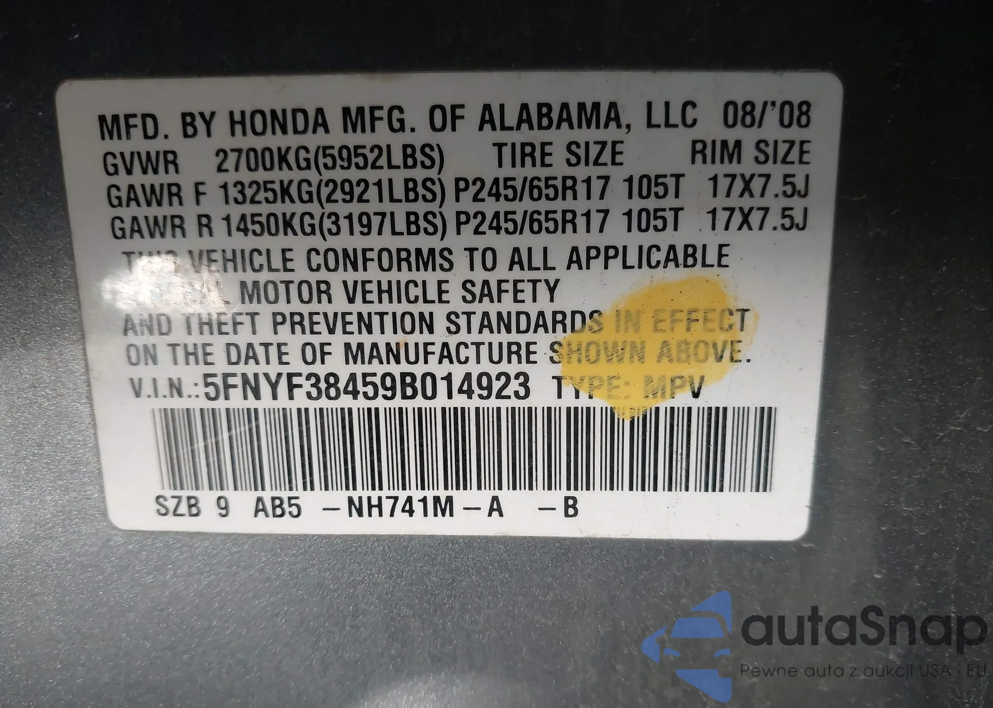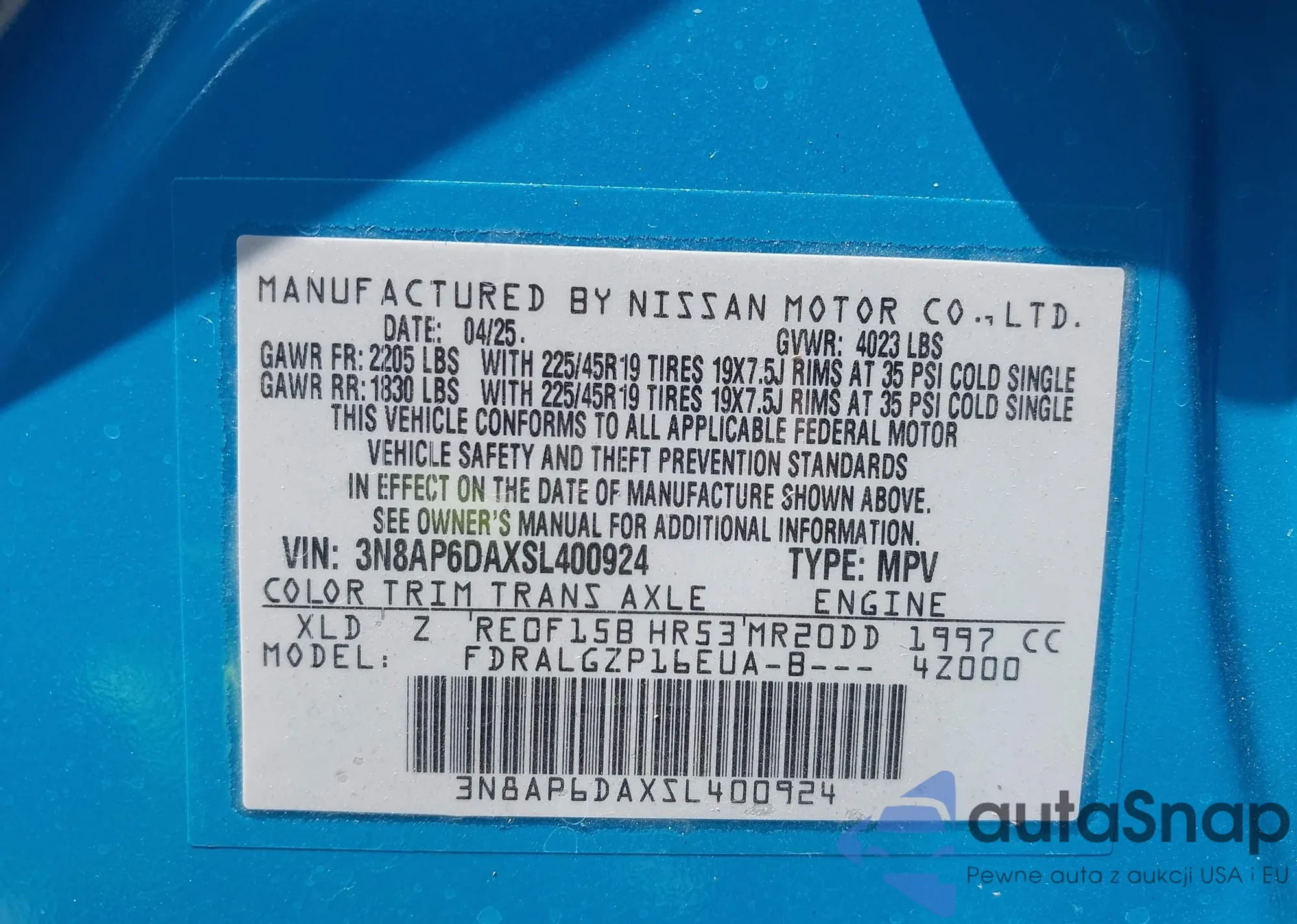 • VIN 3N8AP6DAXSL400924