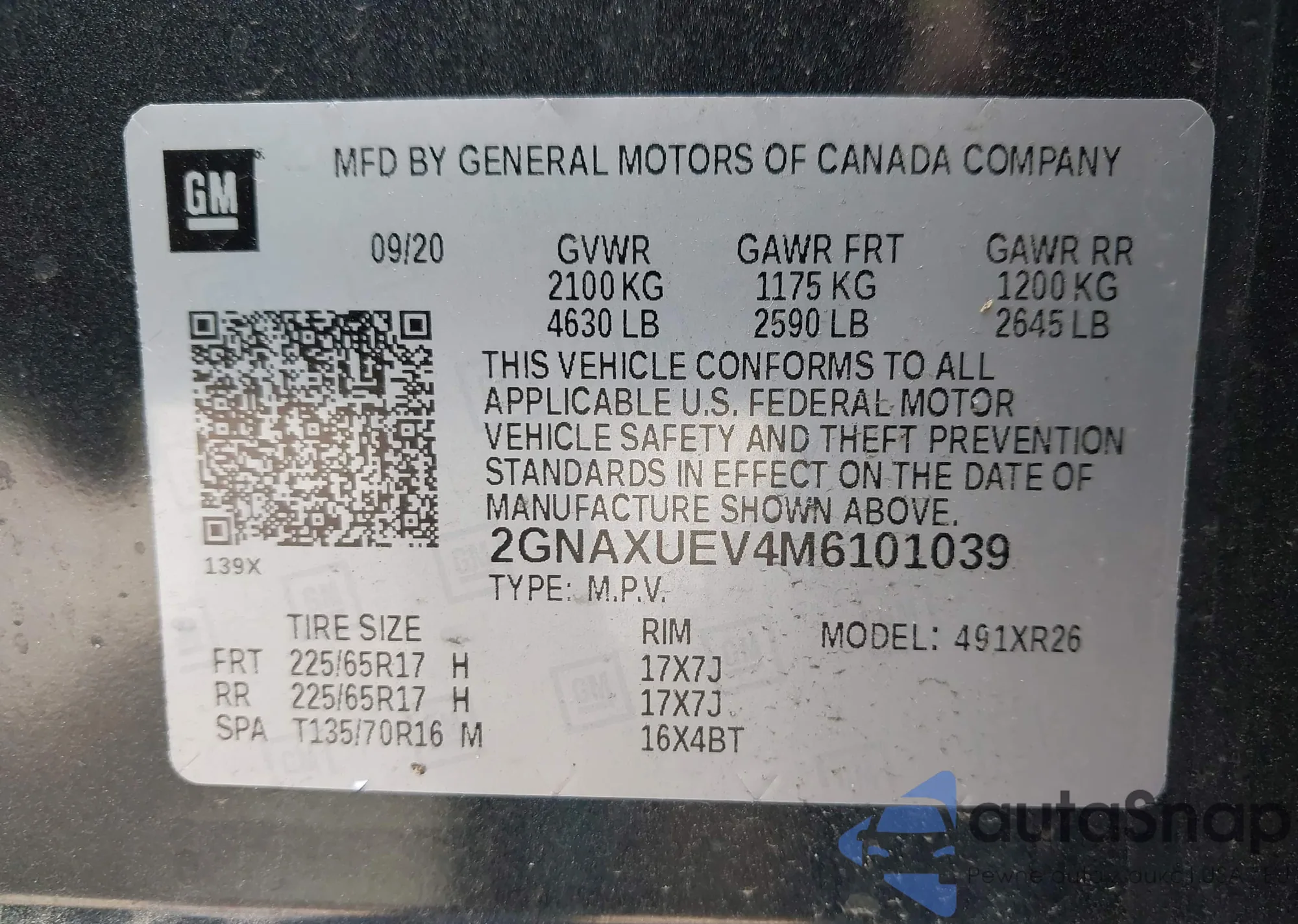 LOT: 42929610 VIN: 2GNAXSEV5J6303243