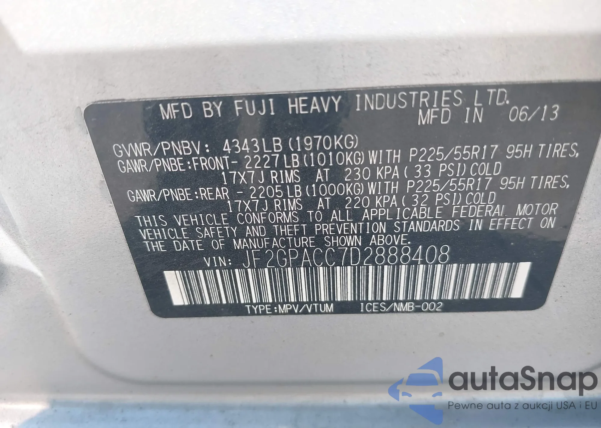 LOT: 43159442 VIN: 1HGCR2F51DA277808